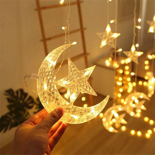 Cortina de luz Luces LED de estrellas y luna, luces intermitentes, cortina, festival, corazón, chica, habitación, dormitorio, decoración de Año Nuevo MOD LED676
