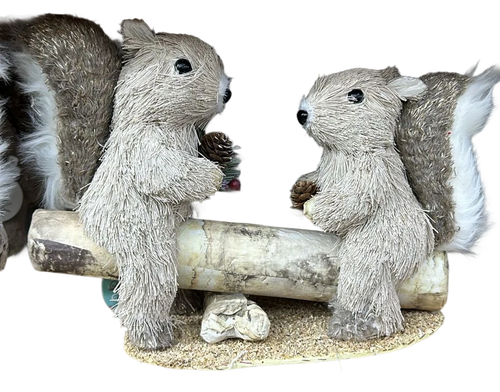 Figura de ardillas navideñas pareja en tronco MOD 26223