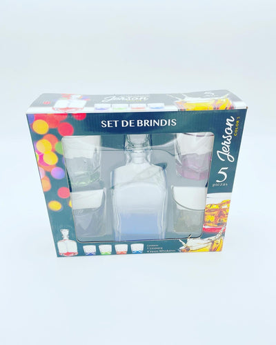 Set de Brindis 5 pz botella de vino, dispensador de whisky, Bar de Vodka, decantador de vidrio de cóctel y vaso de cristal MOD JERSON