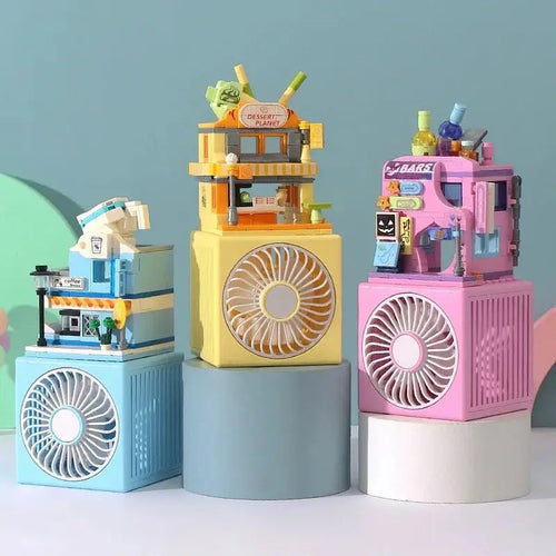 Ventilador de escritorio bloques de construcción ensamblados, hechos a mano, silencioso, carga USB, pequeño, regalo creativo