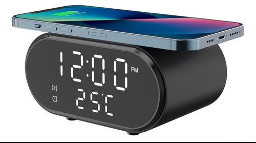Reloj despertador con base power Bank inalámbrico para carga de celular MOD ZE-1918