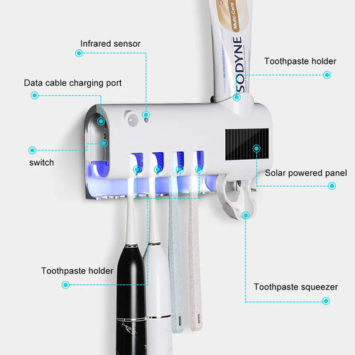 soporte de cepillo de dientes de energía Solar UV, esterilizador de doble capa, dispensador automático de pasta de dientes, accesorios de baño MOD GH2206