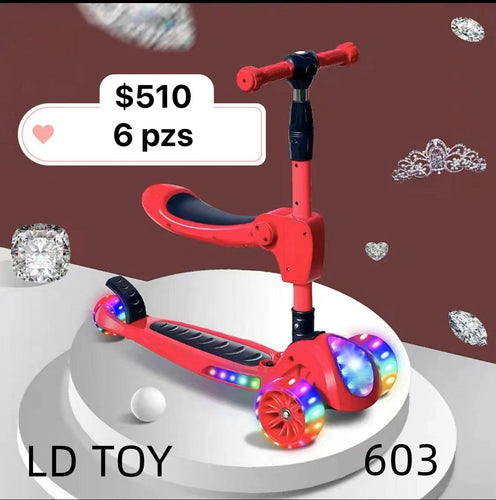 Patín para niños con asiento luz y sonido de 3 años hasta 10 años 3 alturas diferentes MOD 603