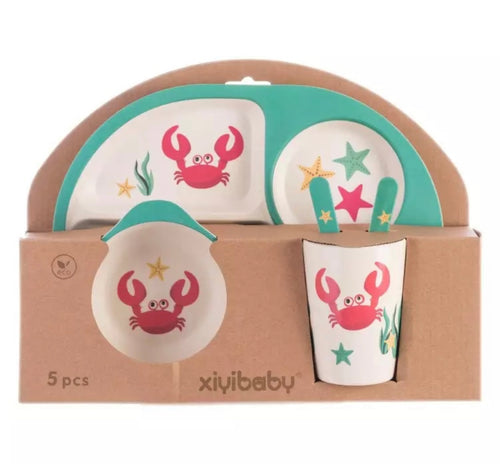 Juego de vajilla de fibra de bambú para niños y bebés, Set de 5 unids/set de animales de dibujos animados, plato, tazón, taza, tenedor, cuchara MOD HB-913