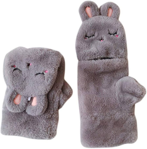 Guantes, Moda Mujer Invierno Encantador cálido abatible sobre Engrosamiento Conejo Felpa Guantes