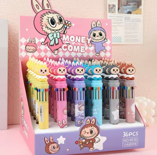 Pluma de Labubu de dibujos animados 10 colores bolígrafo de Gel de prensa multicolor suministros para estudiantes papelería