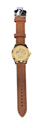Reloj automático con correa de cuero genuino en acero BELLEDA