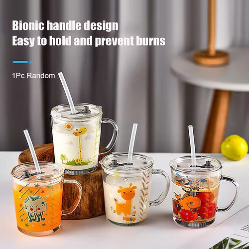 vaso de vidrio de dibujos animados, vasos para niños, 400ml