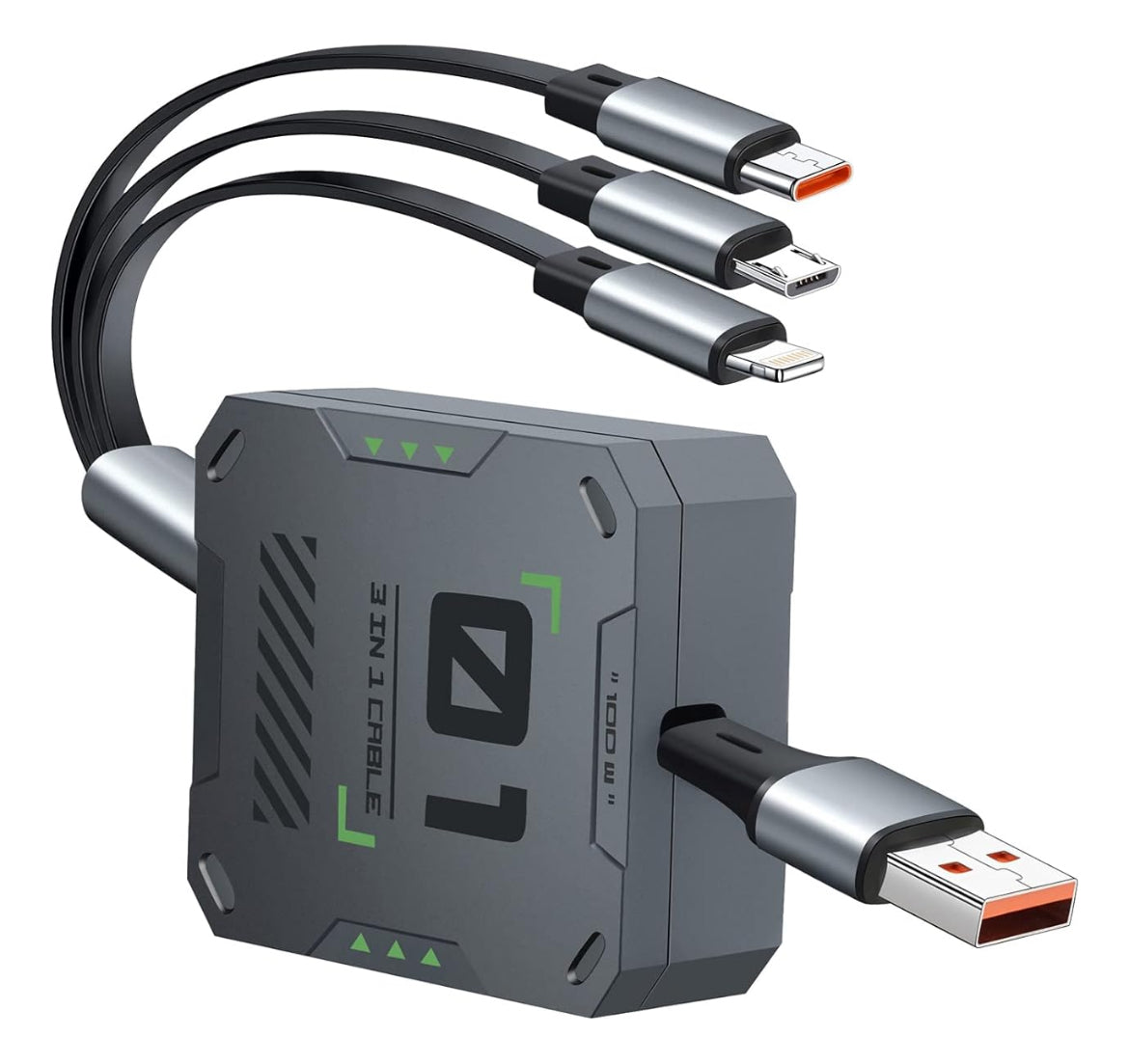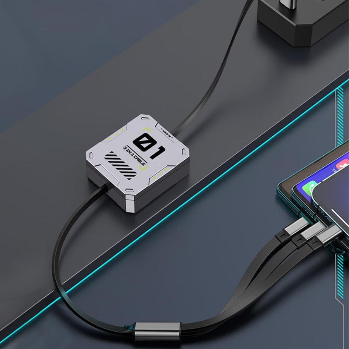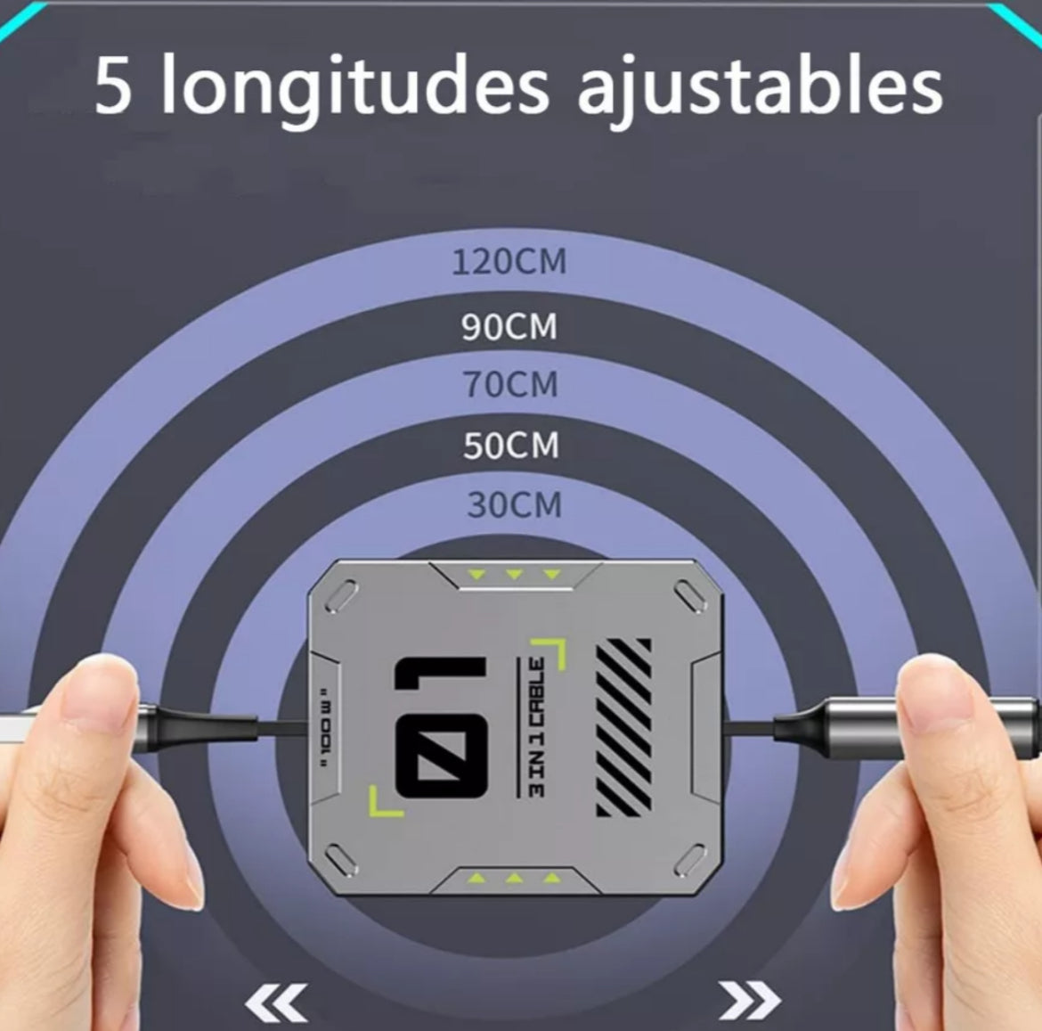 1pc Cable Carga Rapida Y Retráctil 3 En 1/ 66w/ 1.2m/ Tipo C MOD Q-SJ100