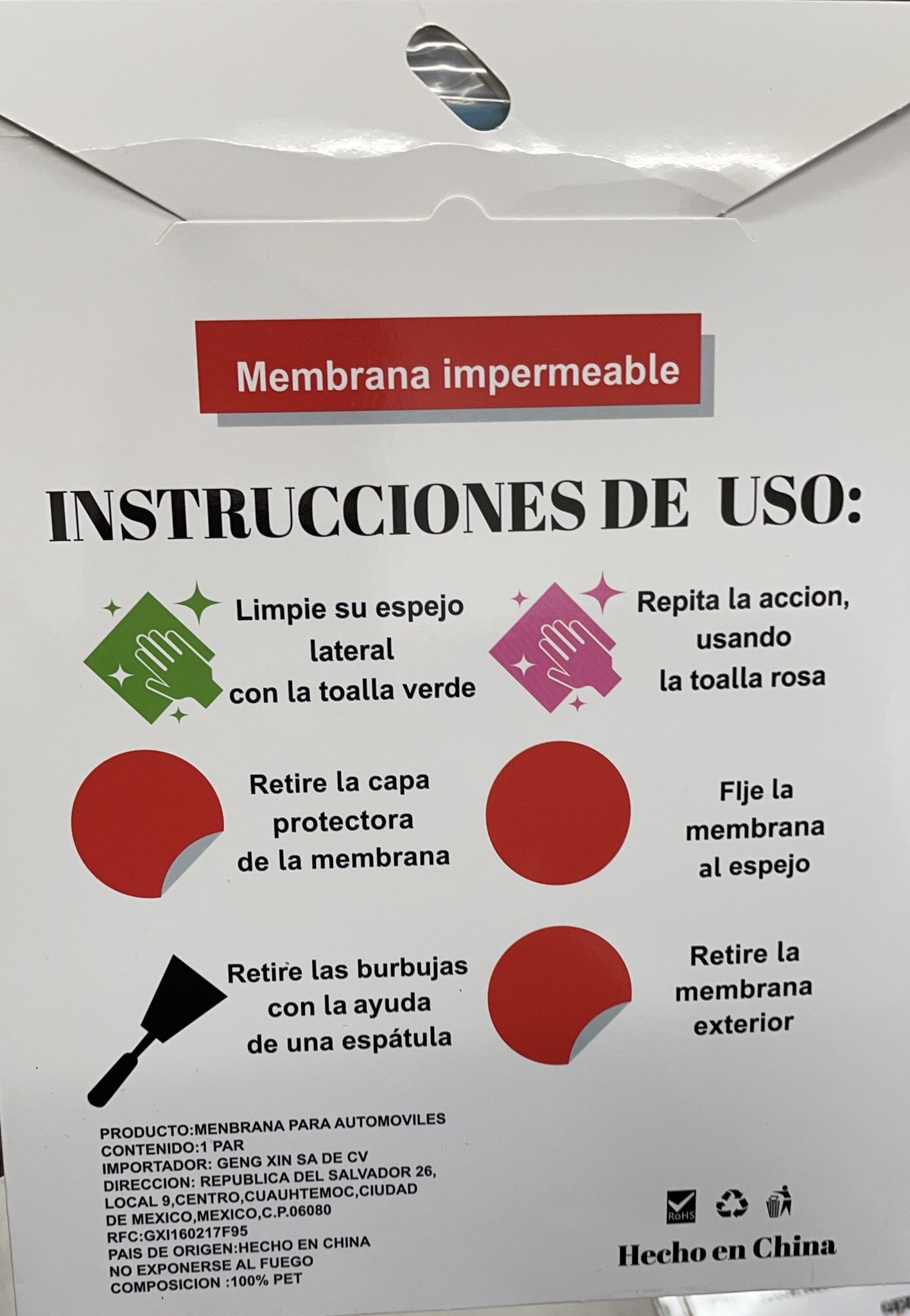 Accesorio1 Par de cuadro MEMBRANA IMPERMEABLE etiqueta engomada del coche espejo retrovisor Anti Duty Anti agua Nano recubrimiento pegatinas para la película protectora de la ventana lateral