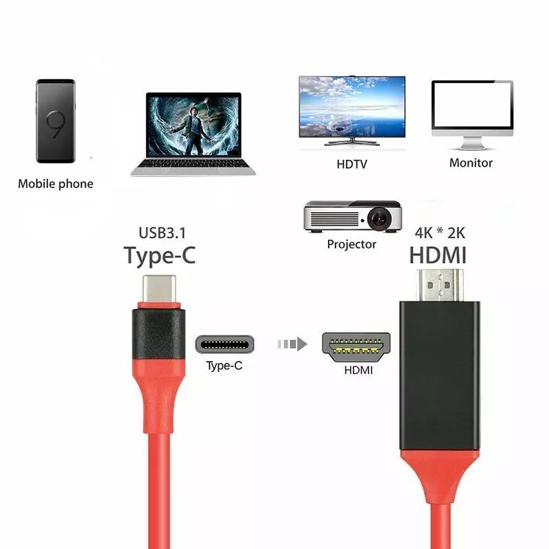 Adaptador de vídeo USB 3,1 tipo C de 2m, USB-C a HDMI, HDTV, Cable de carga Ultra HD 1080P 4k para Samsung S8, Macbook, Xiaomi