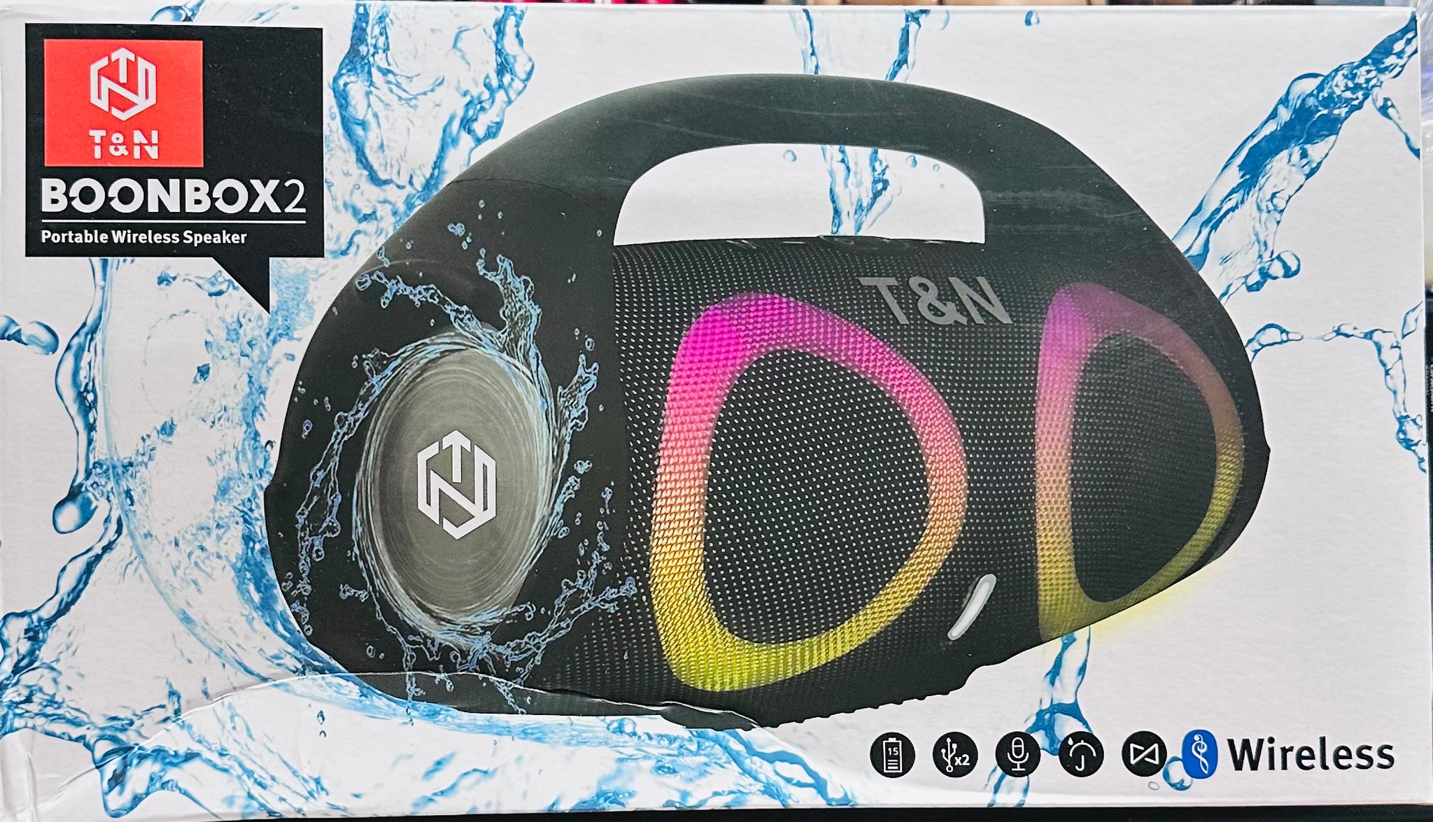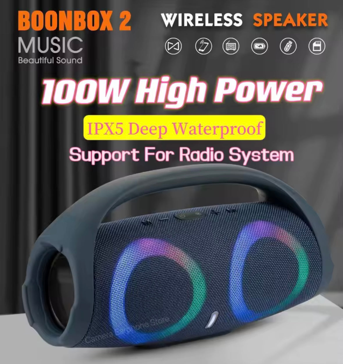 Altavoz Bluetooth de alta potencia de 100W para exteriores, portátil, resistente al agua, luz de Color RGB BOONBOX2