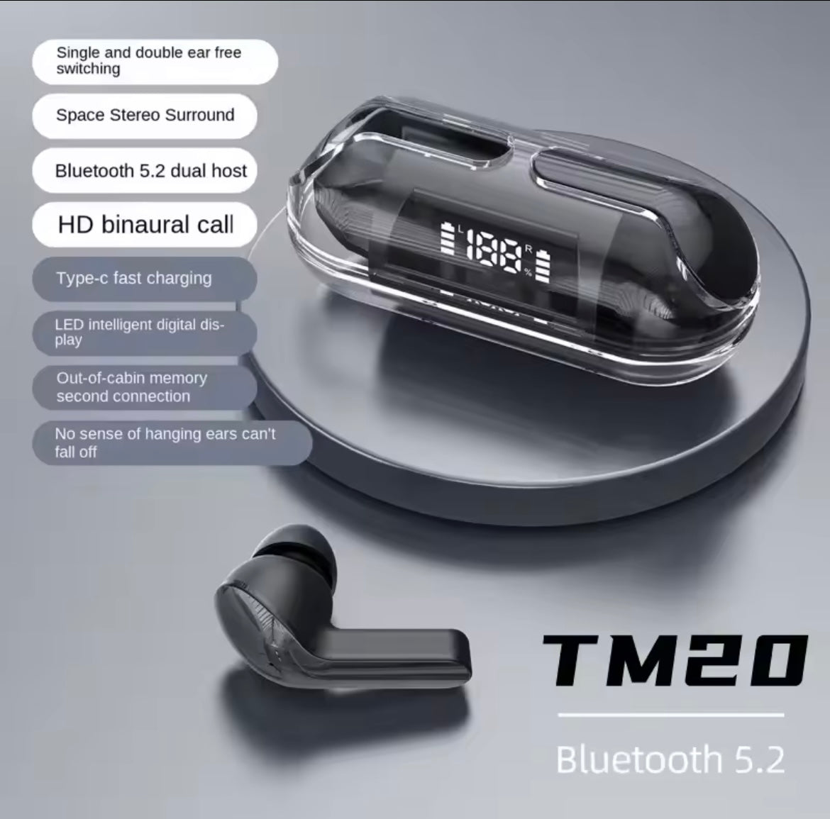 Auriculares inalámbricos TM20, cascos con Bluetooth, TWS, pantalla LED, táctil, cancelación de ruido