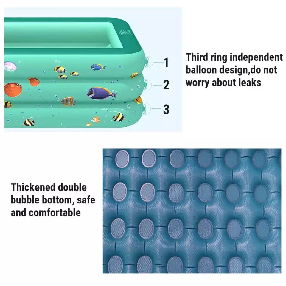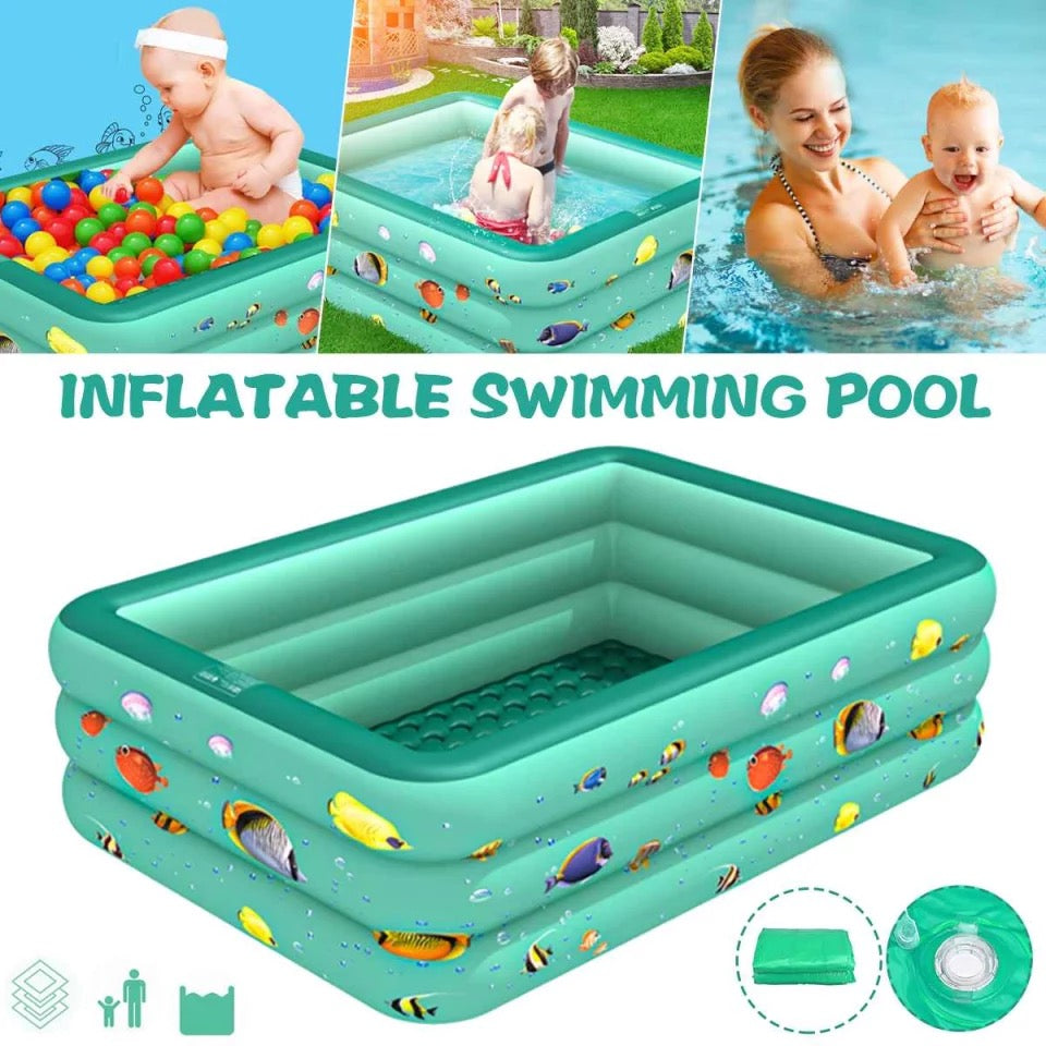 Bañera de natación inflable para niños, de 2 capas juguete, motivo de peces, deportes acuáticos 150x110x50 MOD TOY129