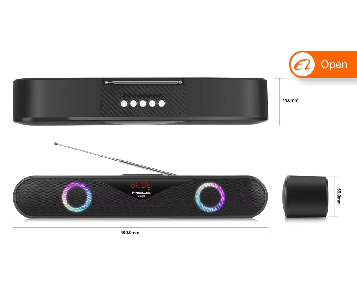 Barra de sonido inalámbrica con dientes azules, altavoz de cine en casa con graves, Woofer activo BT LED, altavoz de fiesta con luz colorida, pantalla LED MOD YG-A765
