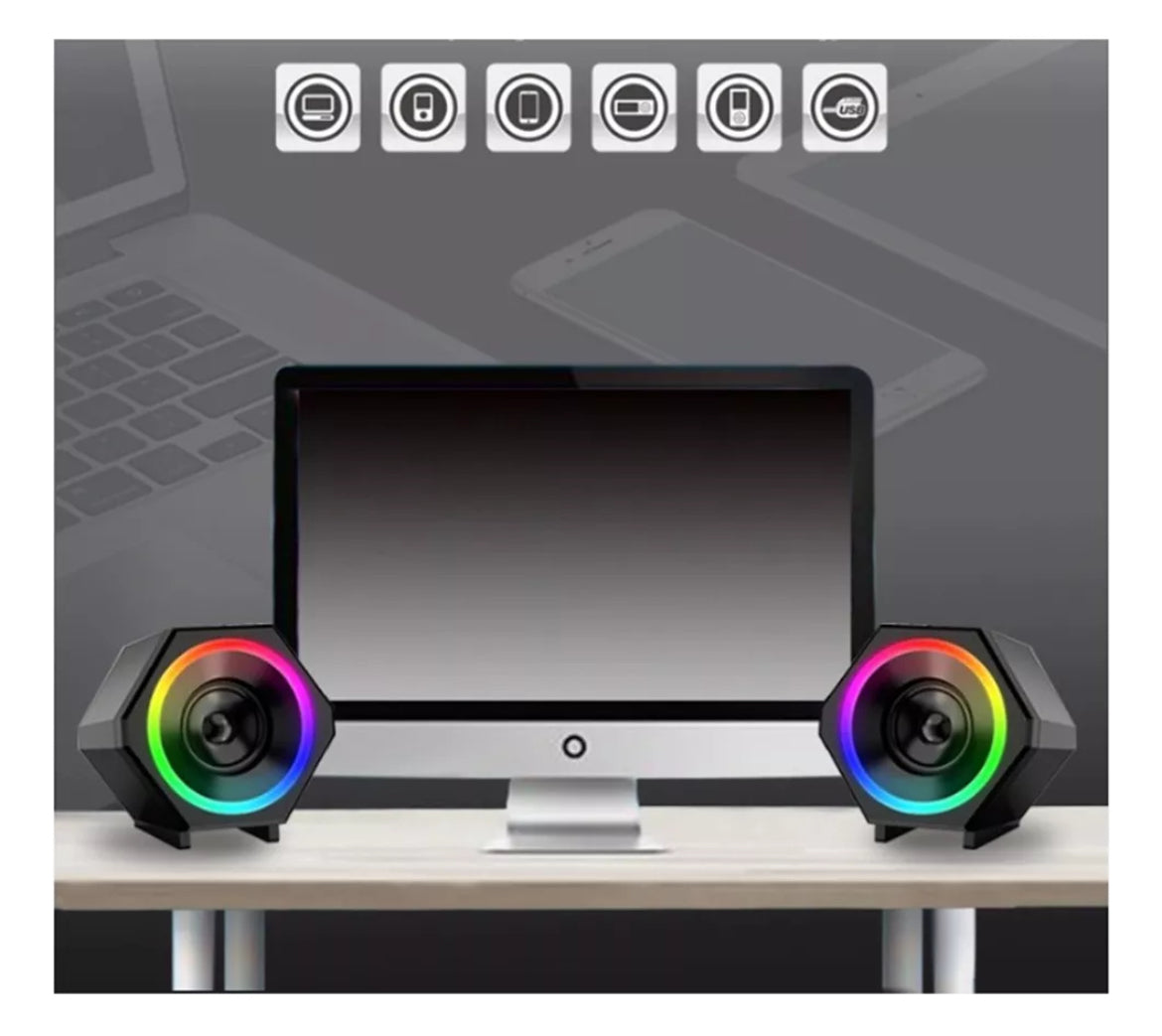 Bocina Estéreo Escritorio Pc Laptop Gamer Rgb Usb 3,5 Mm MOD L-6060