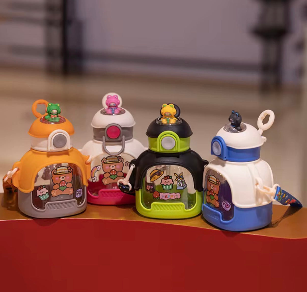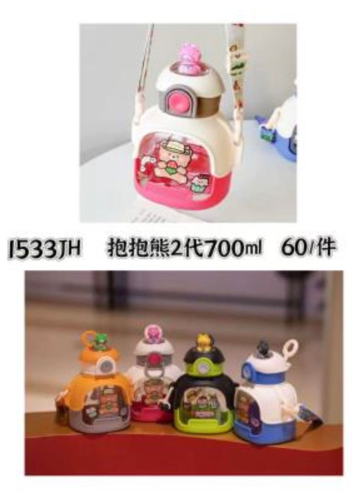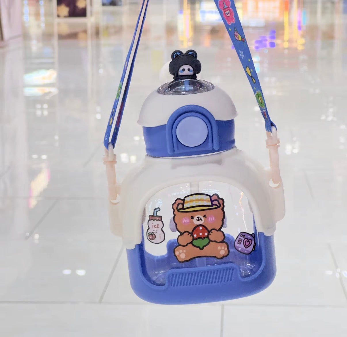 Botella de agua de oso de dibujos animados plástico 700 ml con correa portátil para beber MOD 1533