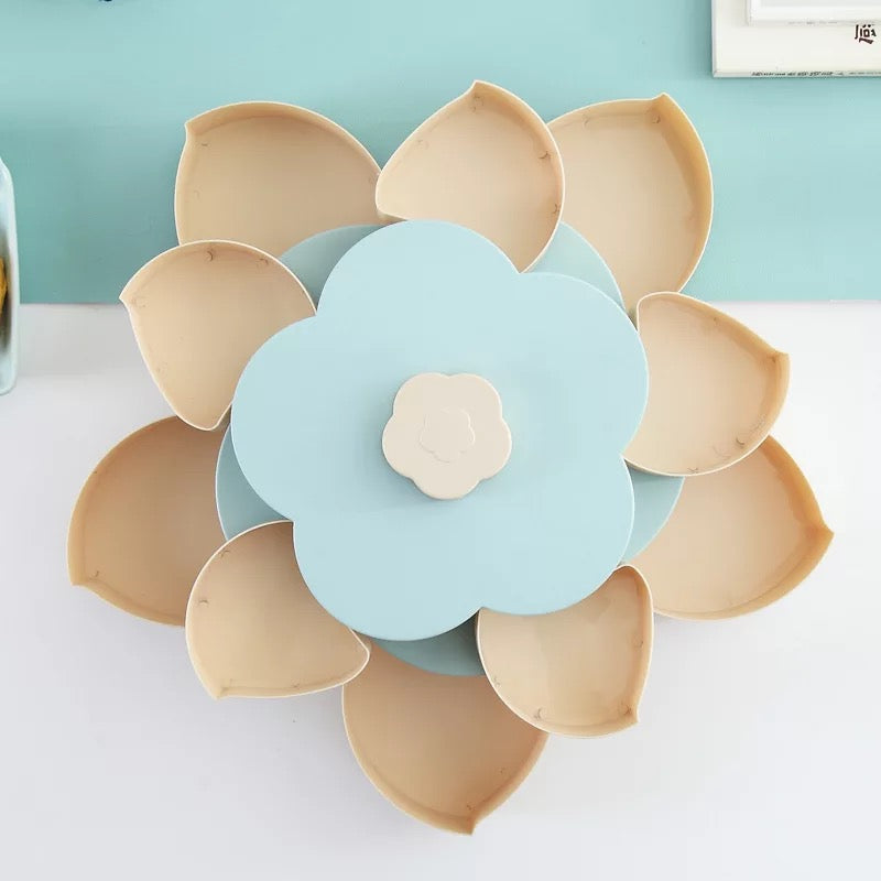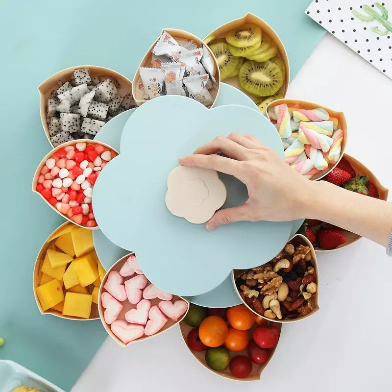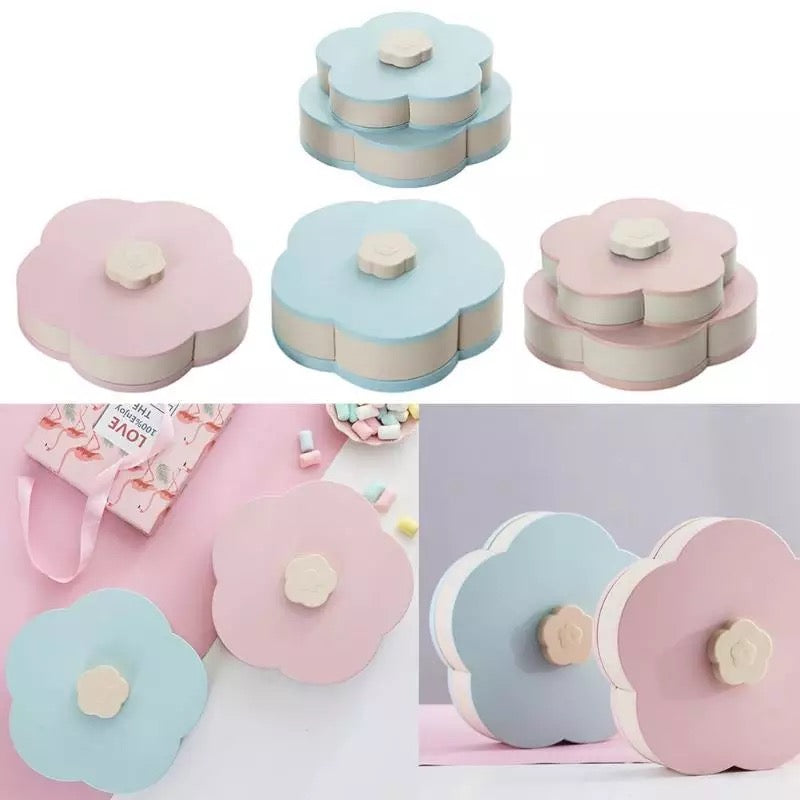 Caja de almacenamiento rotativa creativa de doble capa, organizador de decoración de boda de plástico con diseño de flores para aperitivos y dulces MOD GH6413