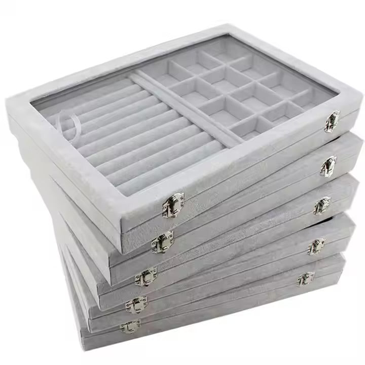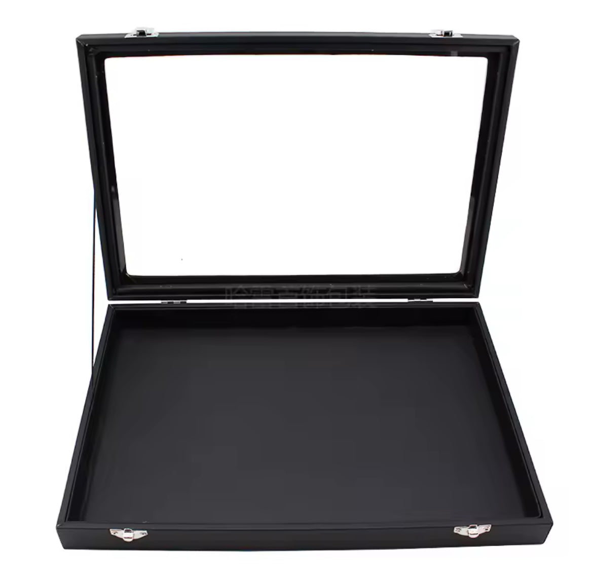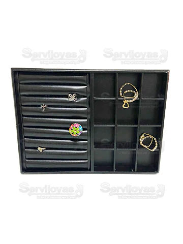 Joyero de cuero con tapa de vidrio negro mediano y grande para anillos, pendientes, pulseras, collares, pendientes, tachuelas MOD SSB41