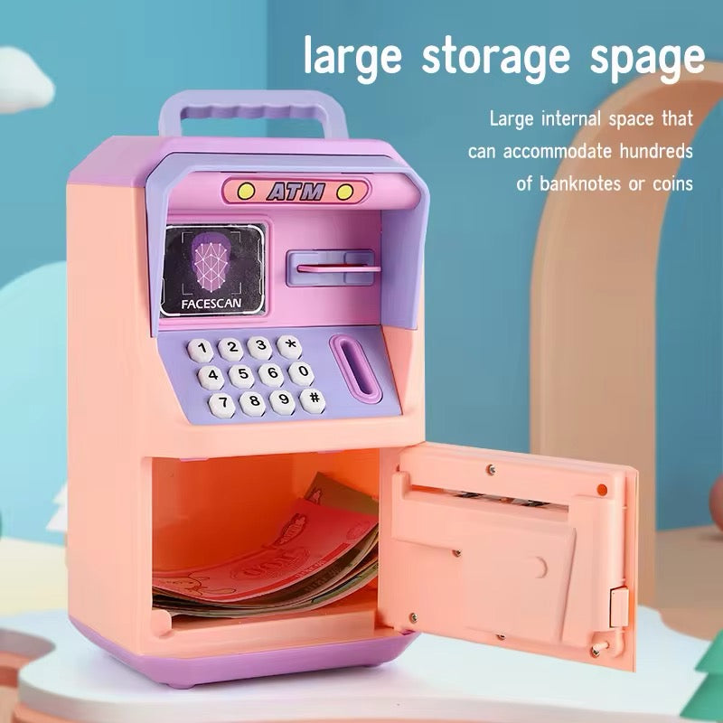 Caja fuerte de cajero automático para niños, caja de monedas de música, Banco de dibujos animados con desbloqueo facial MOD ZE-0781