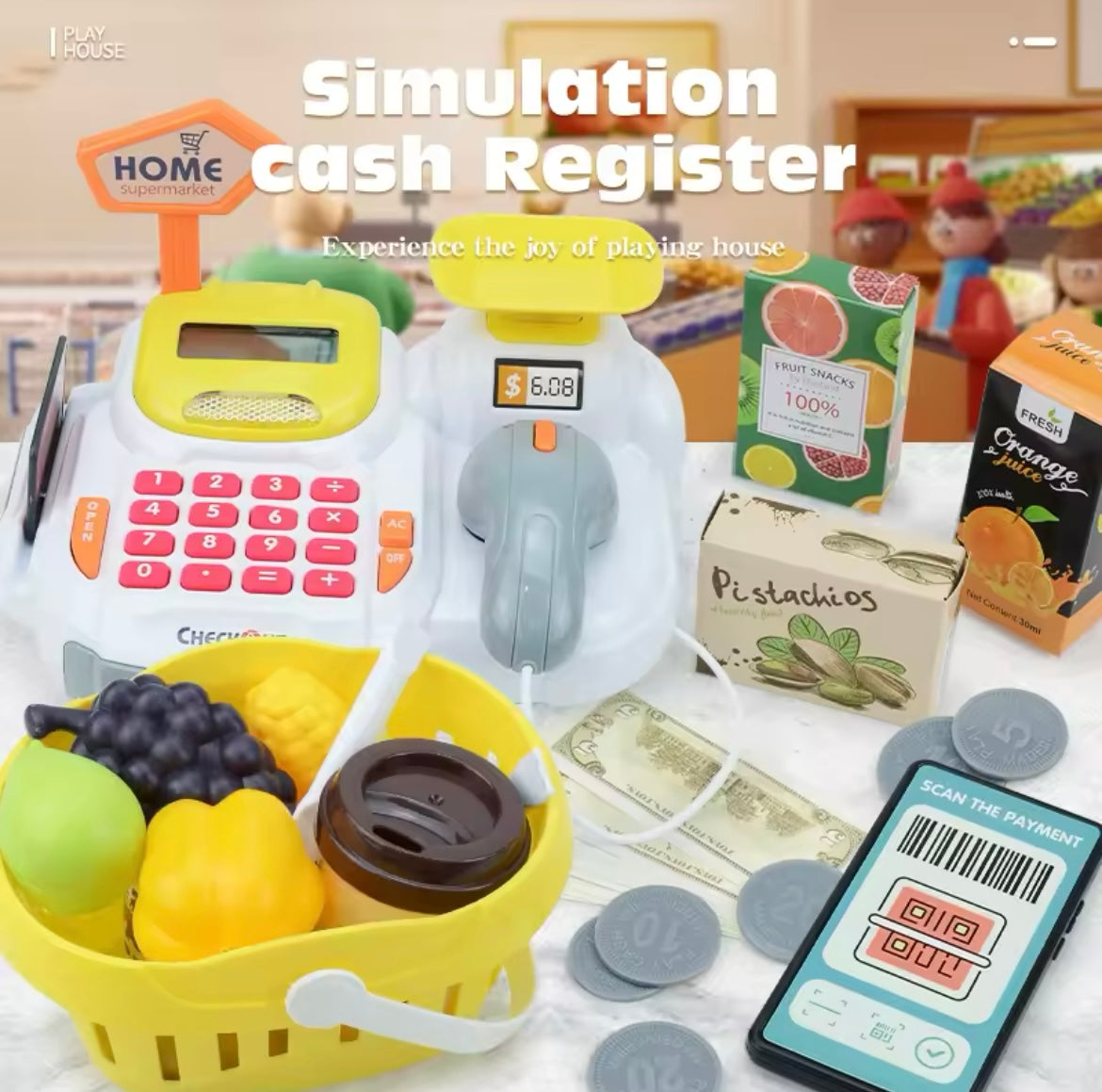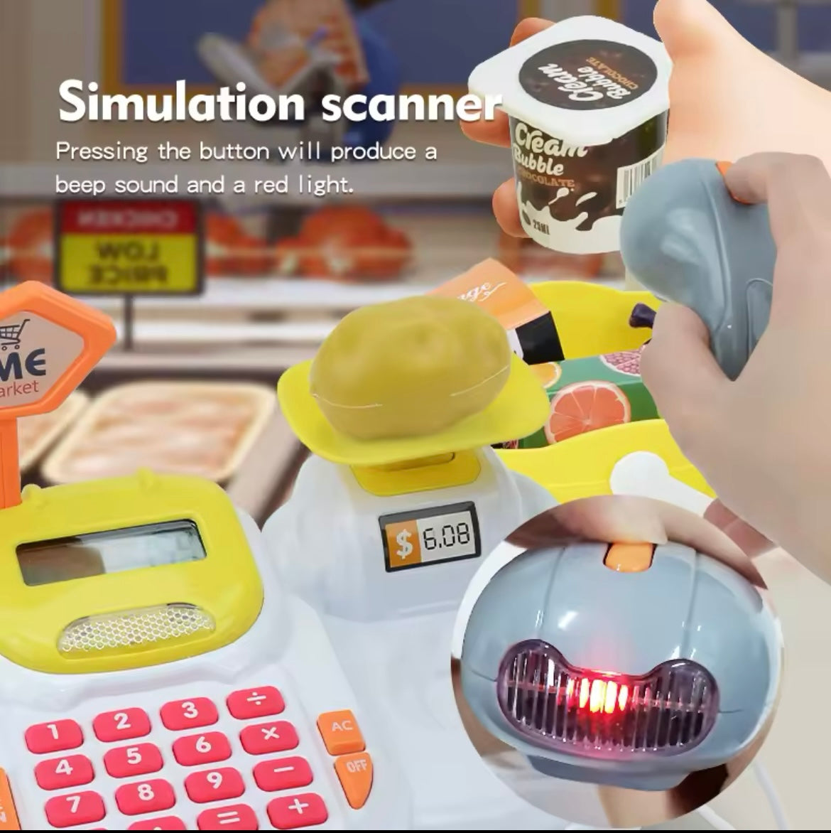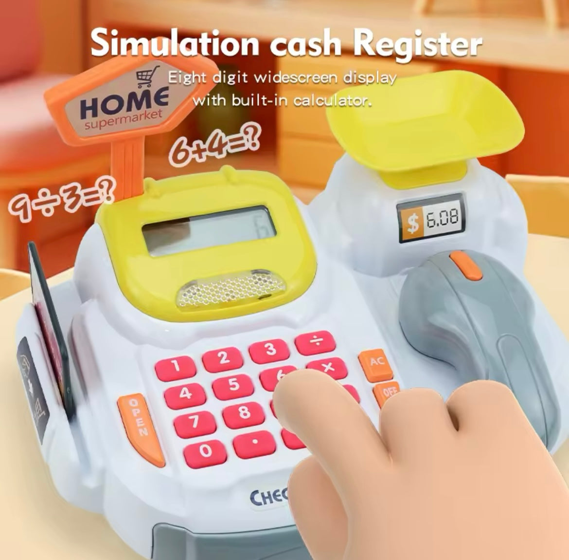 Caja registradora de juguete para tienda de supermercado con sonidos electrónicos, escáner de trabajo, calculadora, aprendizaje preescolar para niños y niñas MOD 668-117