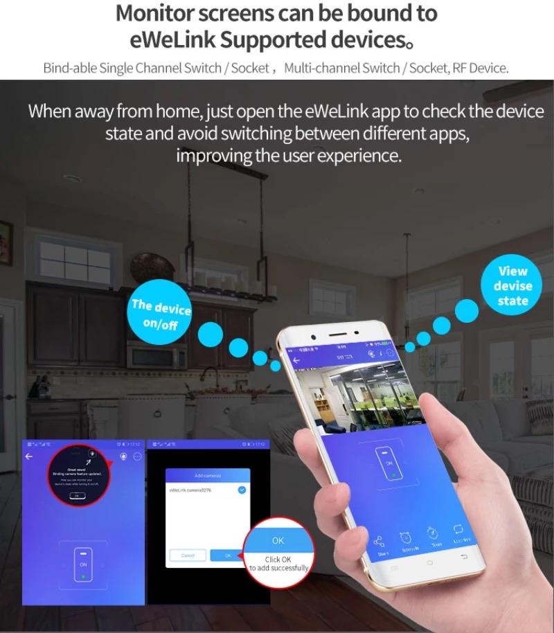 Cámara ip Mod 10005 EWeLink, cámara IP inteligente IOT HD, cámara de visualización automática por teléfono móvil, Audio bidireccional, red LAN, Monitor de hogar