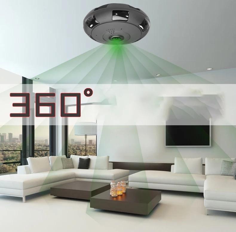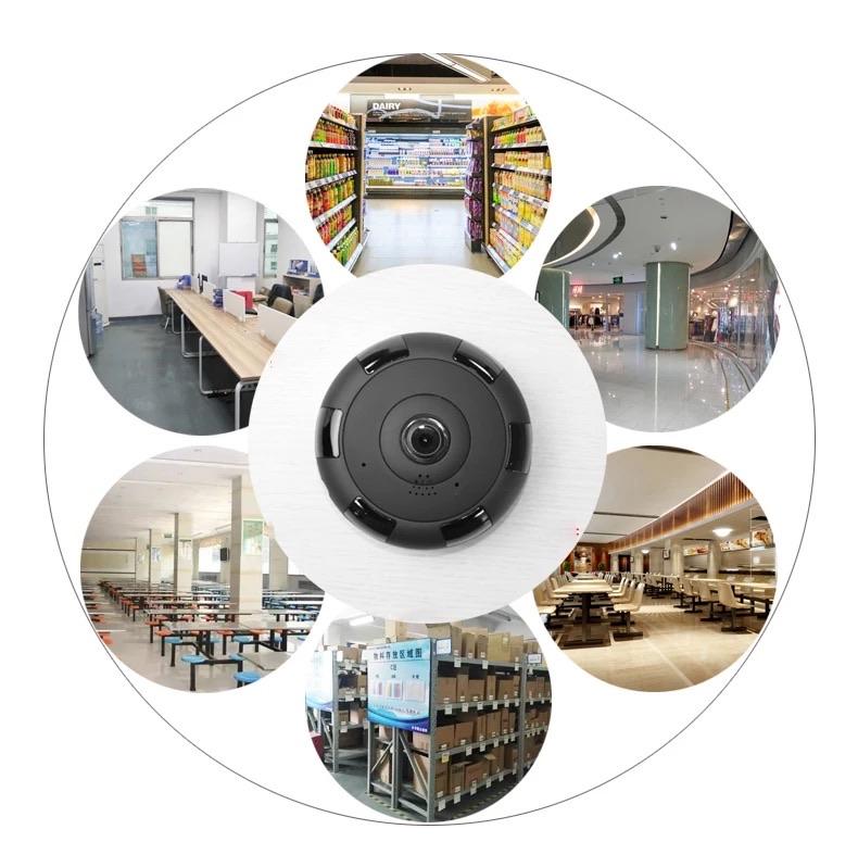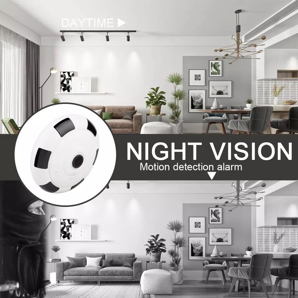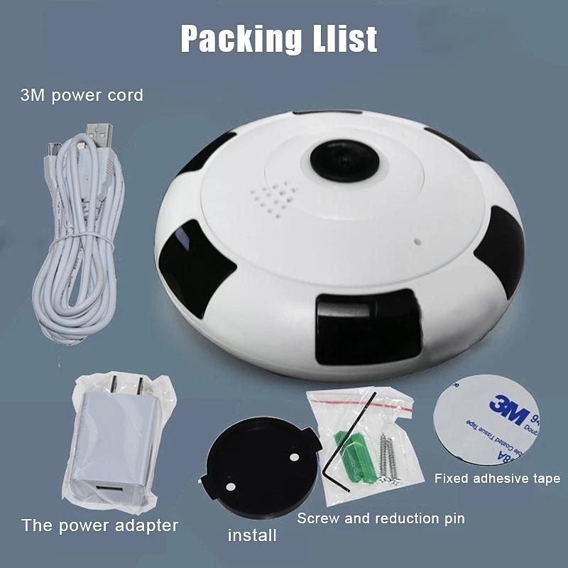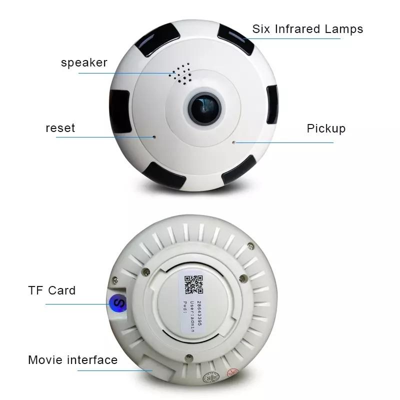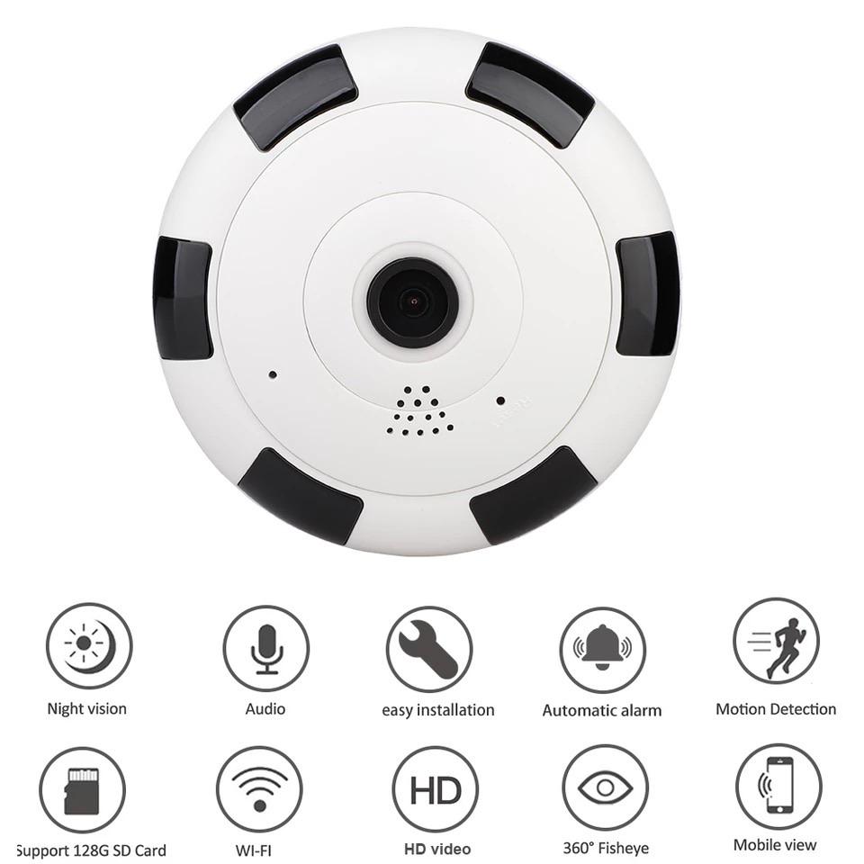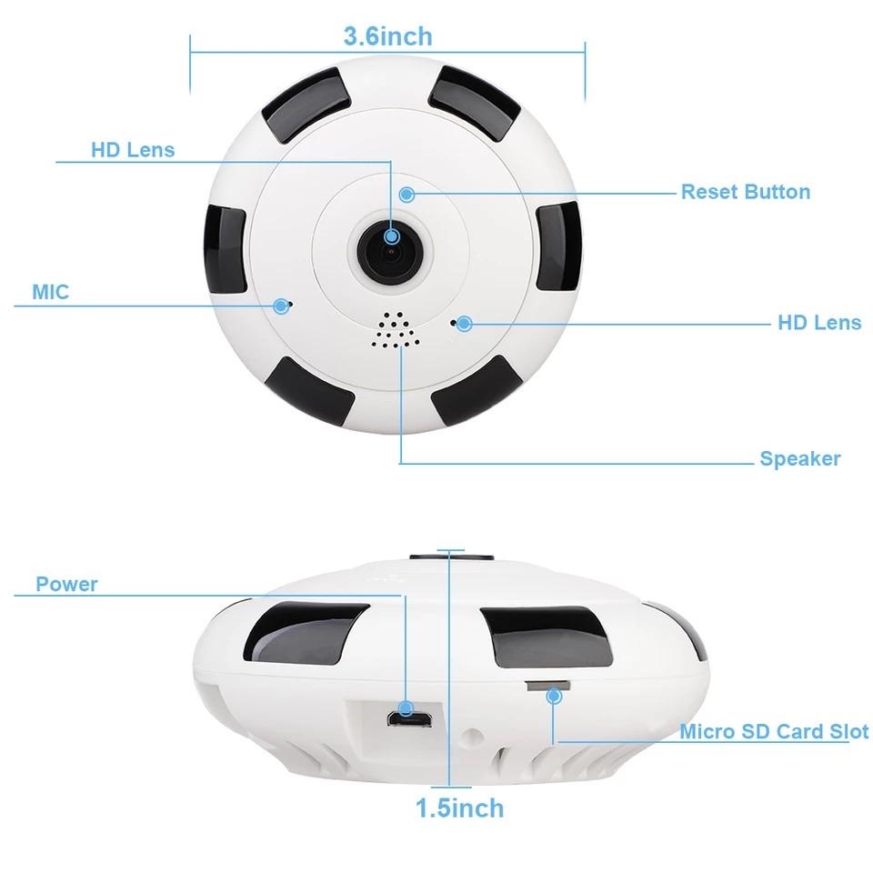 Cámara Mod 10364 EVKVO, 1080P, panorámica inalámbrica, Whit y cámara negra, cámara IP de red de seguridad para el hogar, lente de cámara de 360 grados, Ojo de pescado, visión nocturna IR