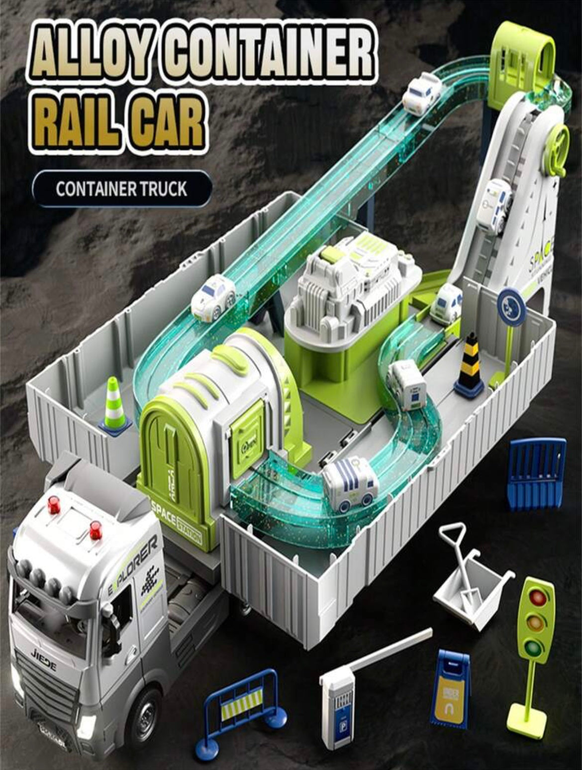 Camión Contenedor Grande Para Niños Con Pista De Transformación De Rompecabezas, Juguete Para Vehículo De Pista Espacial De Camión Grande Con Grúa De Vehículo De Ingeniería MOD JD605D