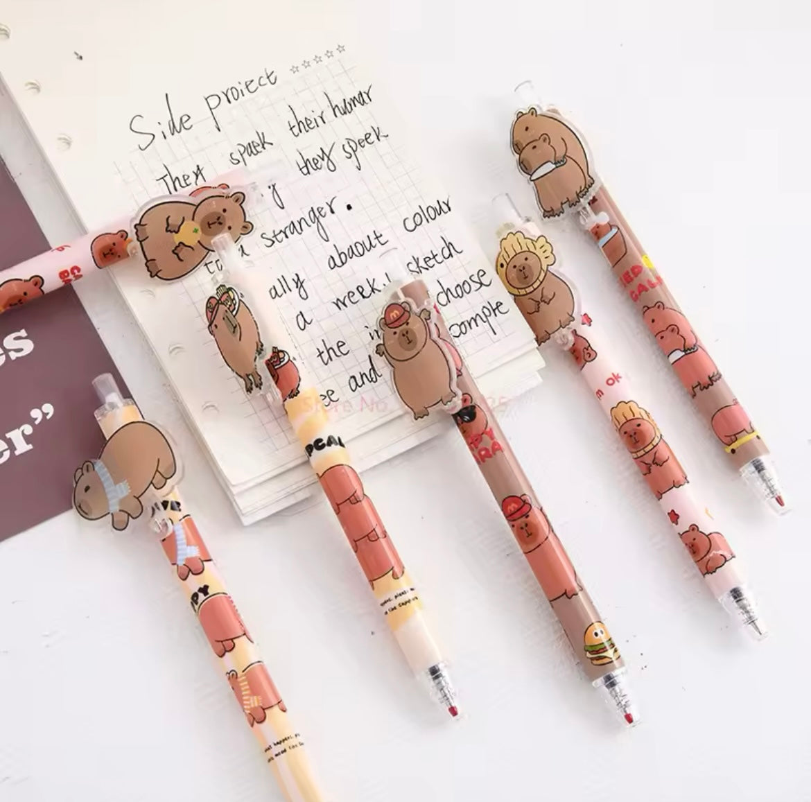 Capybara de Gel de prensa,negro, 0,5mm, pluma placa bolígrafo de escritura, instrumento de escritura, suministros de papelería para estudiantes, regalo Kawaii
