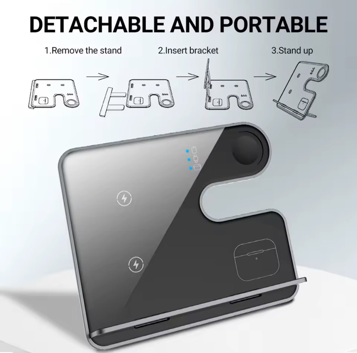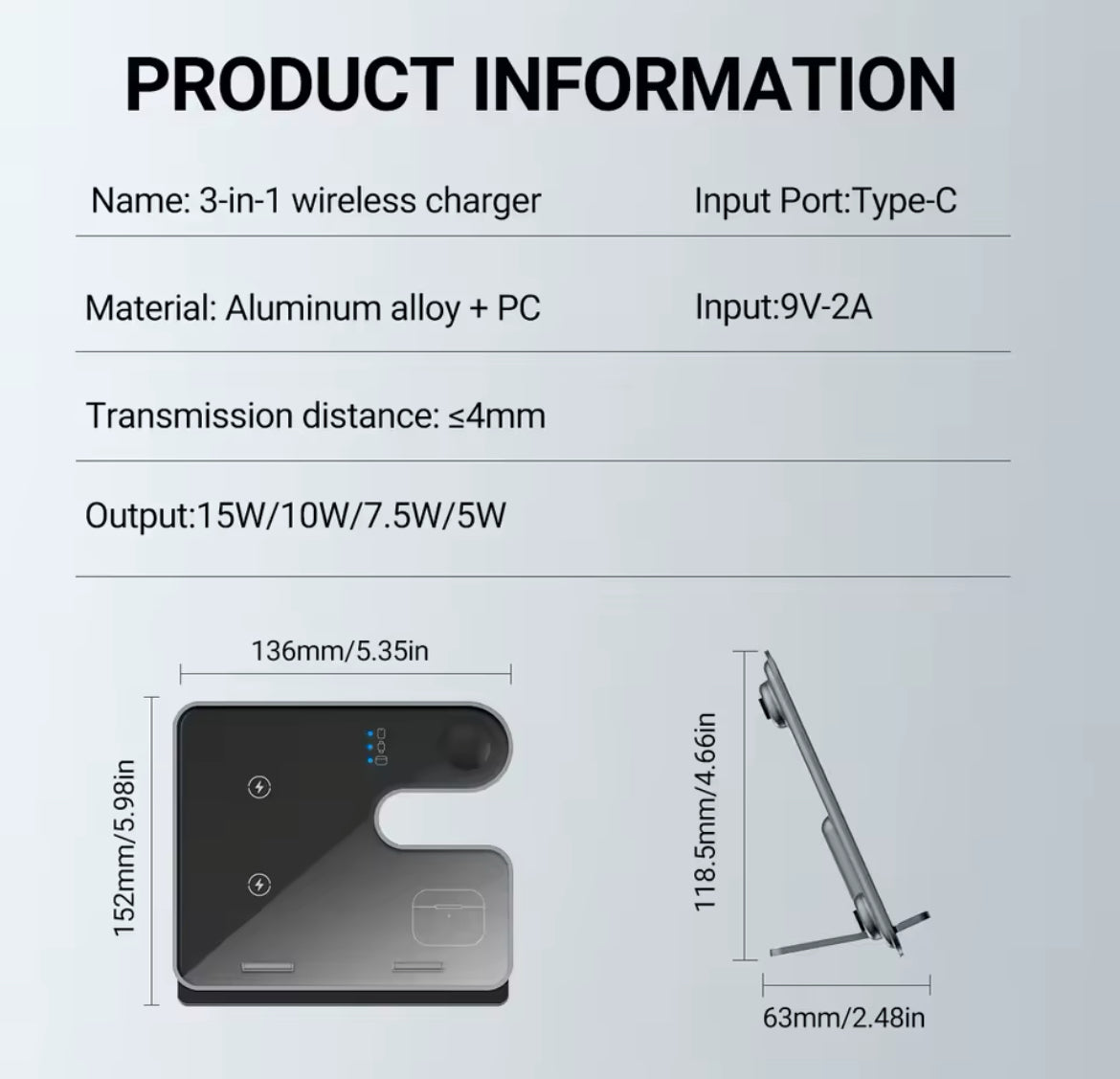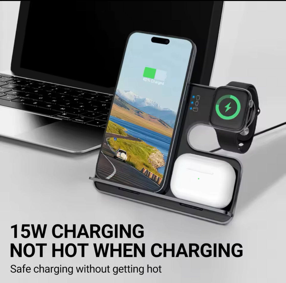Carga inalámbrica magnética desmontable, de aluminio -3 en 1, 15W, carga rápida, Compatible con Apple Watch, Airpods, iPhone 15 14 16 MOD S1
