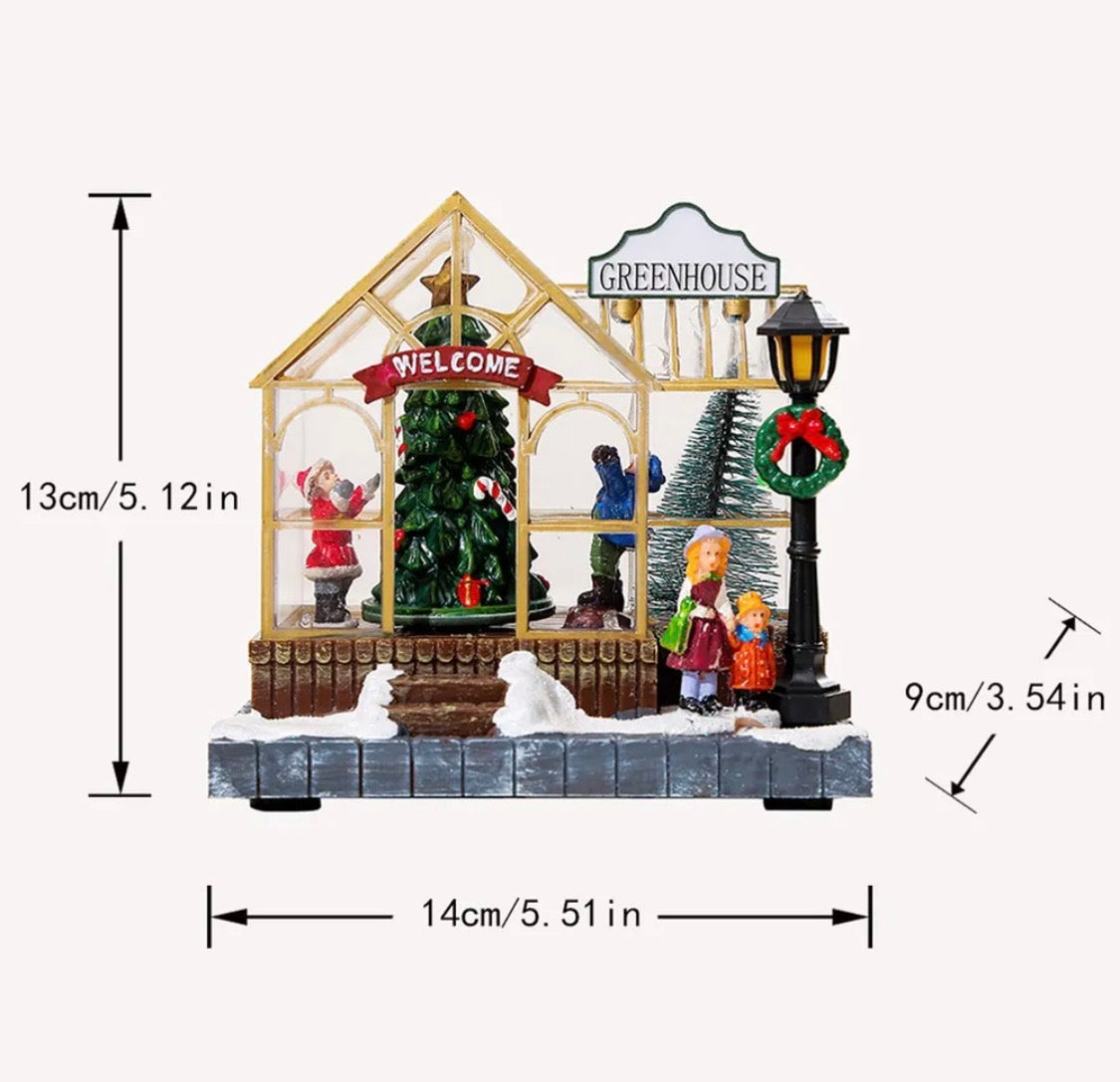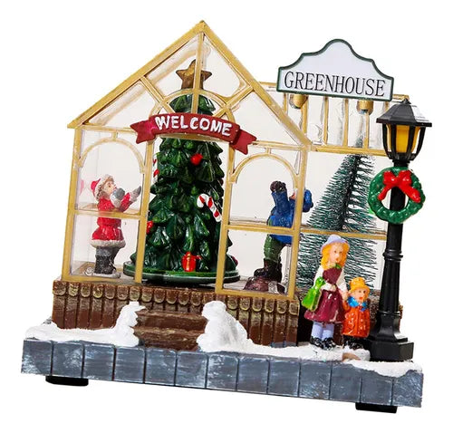 Casita de cristal de villa grande navideña con arbol giratorio y musical MOD W366