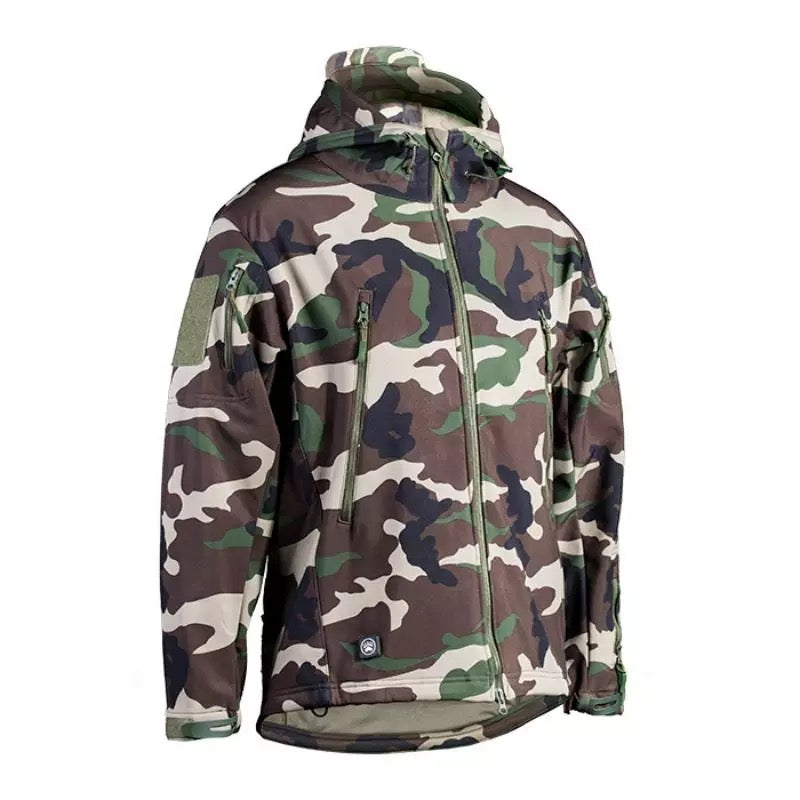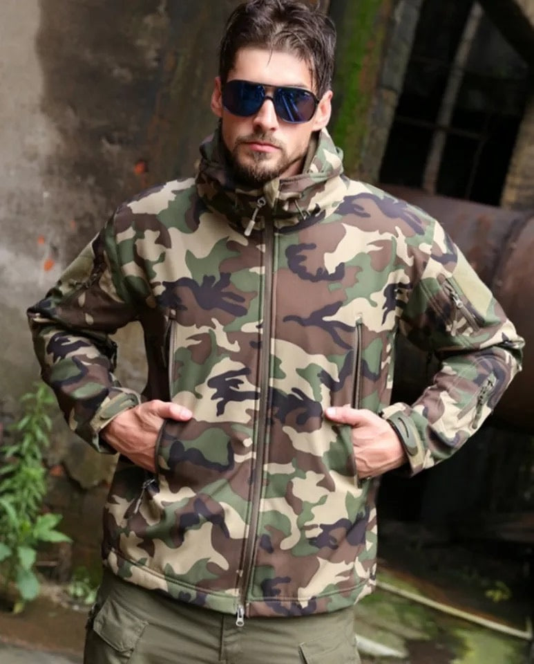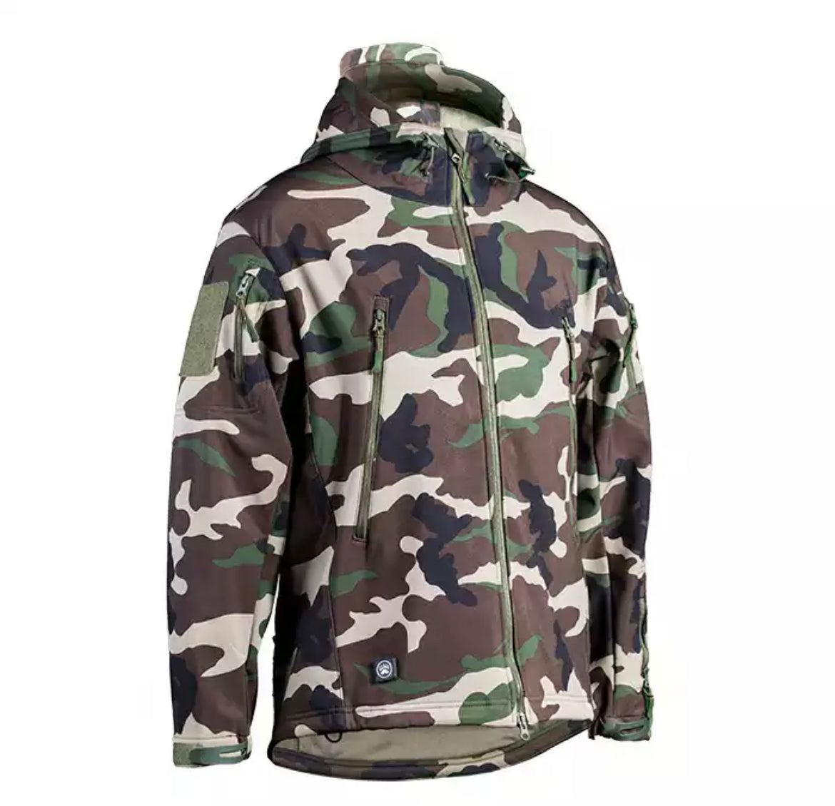 Chaqueta con funda suave de piel de tiburón con capucha para exteriores, ropa informal del ejército de camuflaje militar, abrigo de viento táctico para lluvia,frió ,caza , senderismo y camping MOD X-026