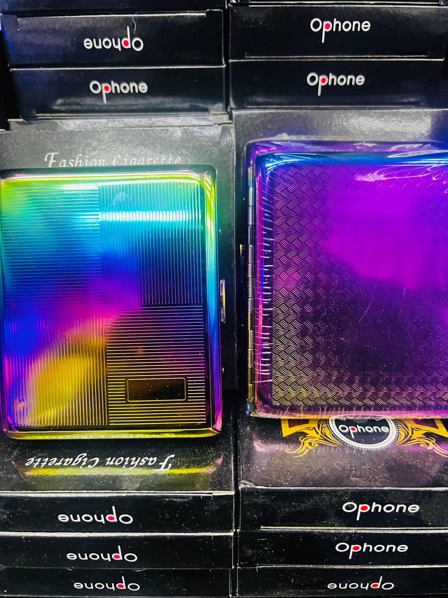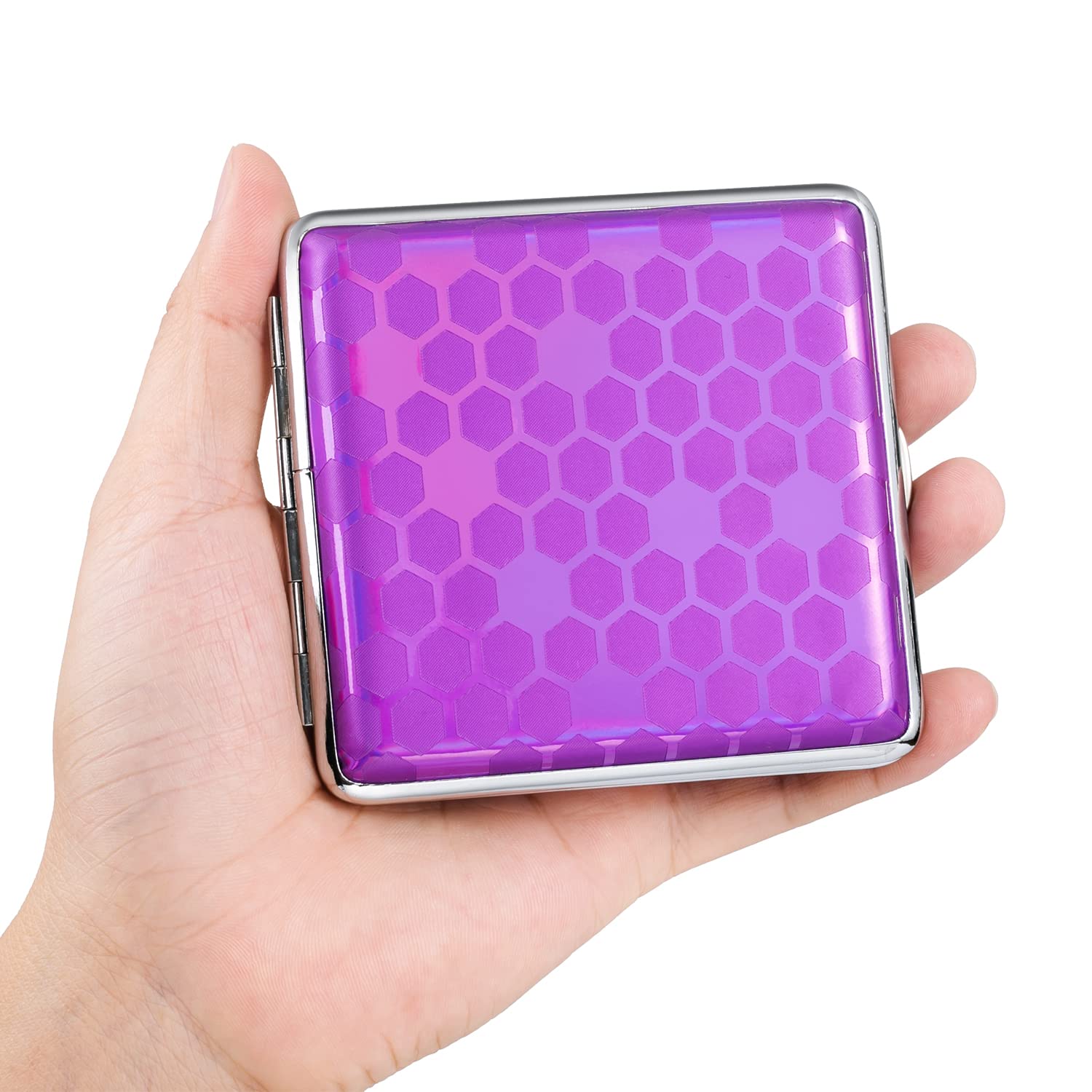Cigarrera Caja de metal negro plateado plateado plateado amarillo rosa cigarrillo acero inoxidable para 20 cigarrillos con banda de goma, una caja de cigarrillo elegante tornasol