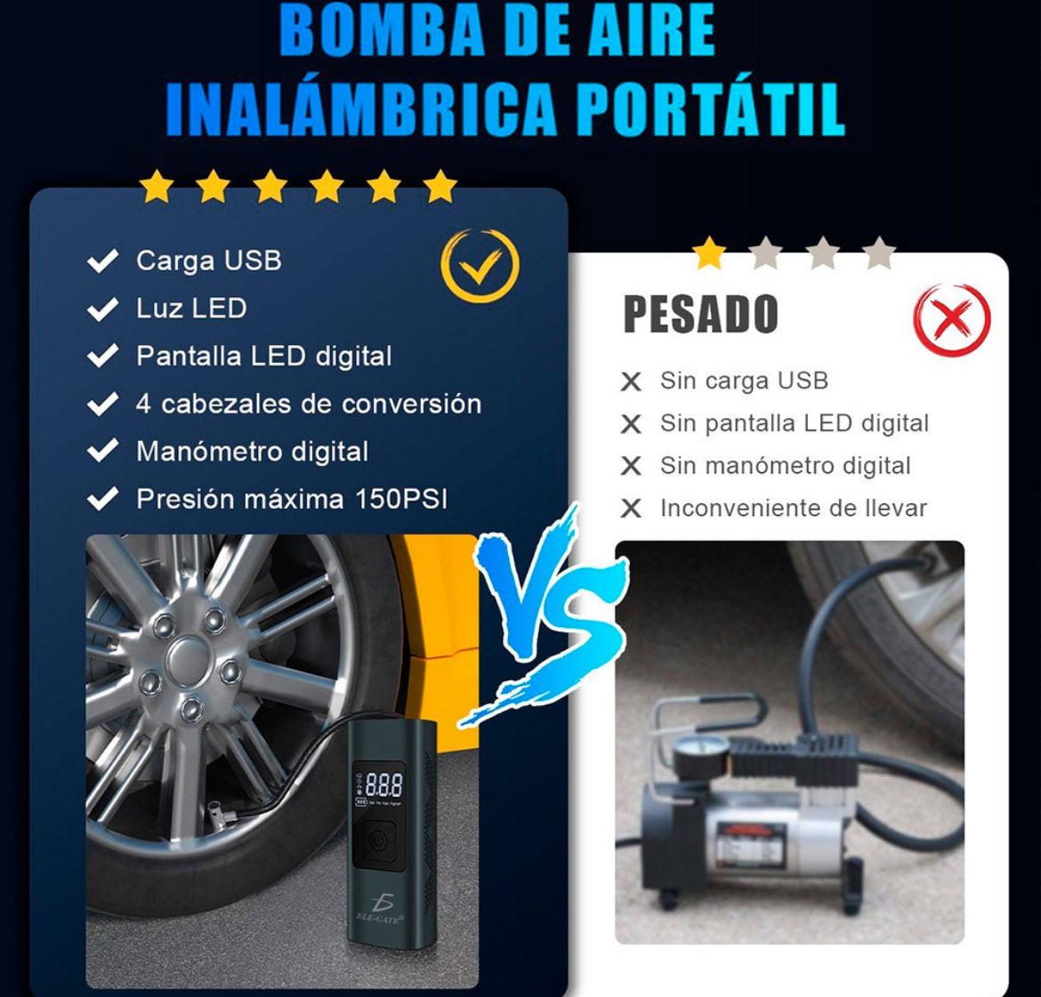 Compresor de aire eléctrico portátil para bicicleta y motocicleta, bomba inflable de neumáticos inalámbrica, USB tipo C, batería de 4000mAh, 150psi MOD HOG.95