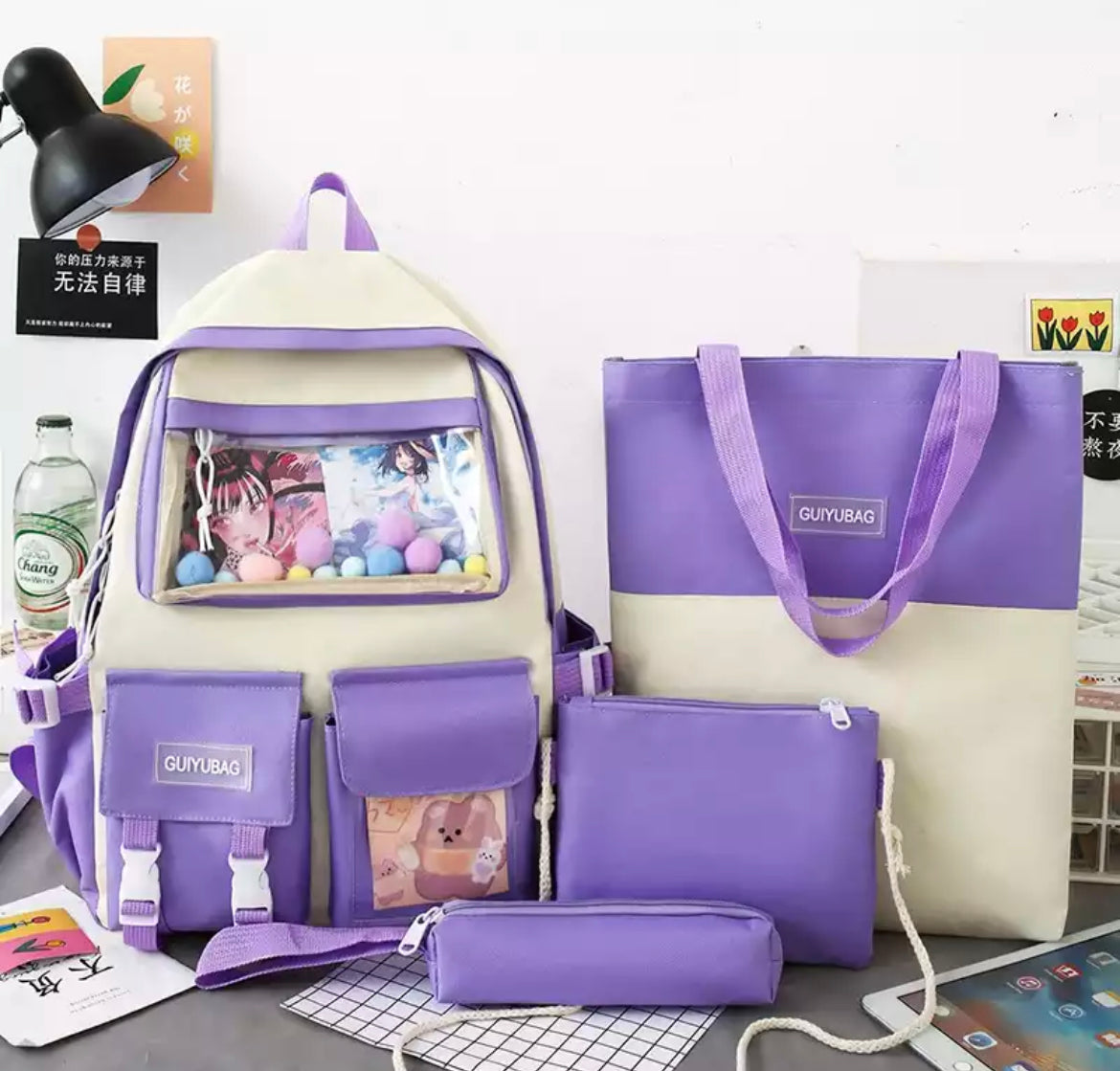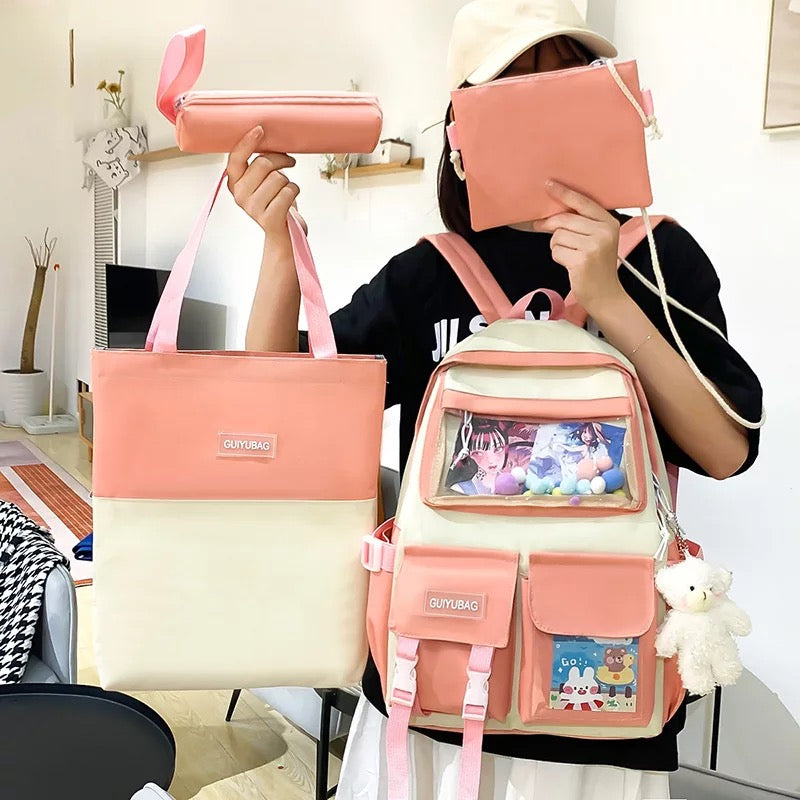 Conjunto de 4 unids/set de mochilas de lona para mujer, morral escolar para chicas adolescentes, mochila de viaje para estudiantes, mochila para ordenador portátil KAWAI MOD 314/406/2012