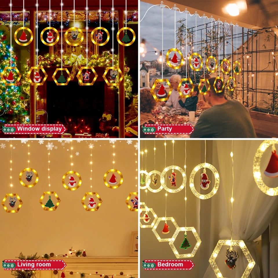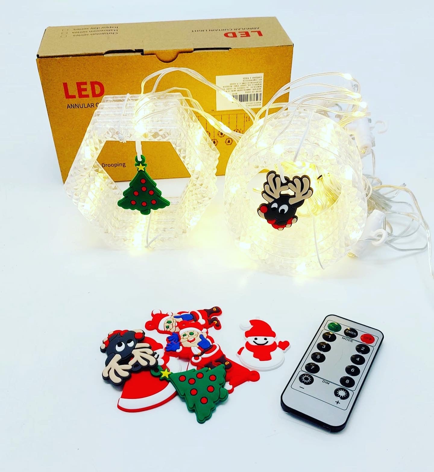 Cortina de luces navideñas de 3x0,7 m, cadena de luces 100LED para ventana con gancho y carga USB remota, 8 modos de iluminación colgantes de Navidad MOD SDD107 LED153
