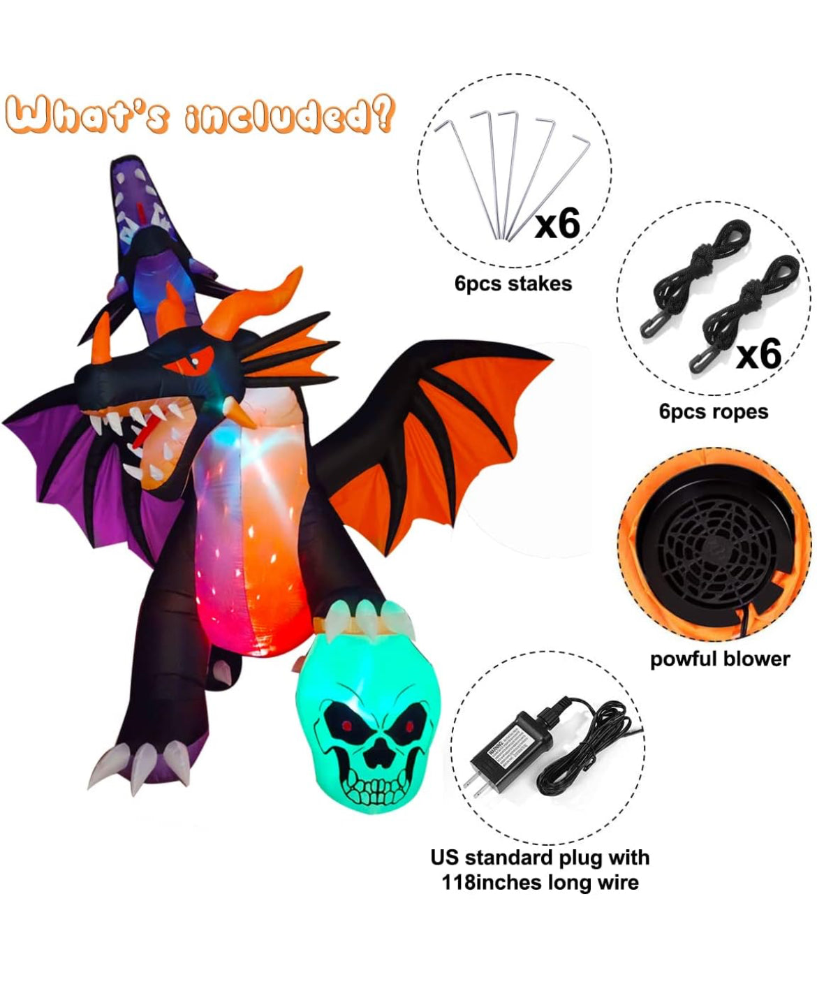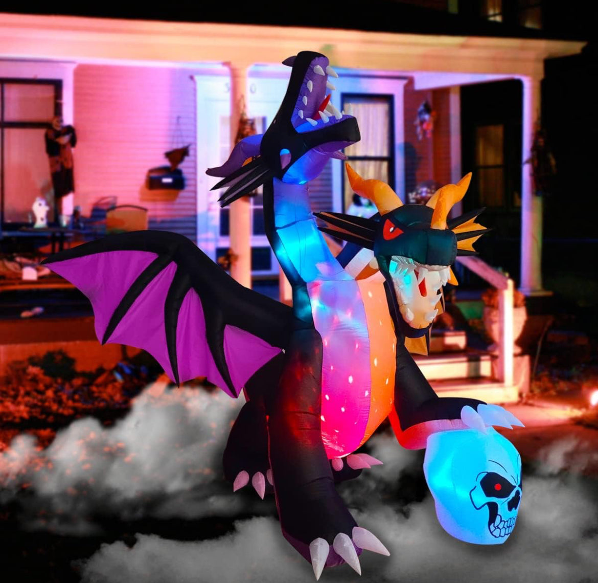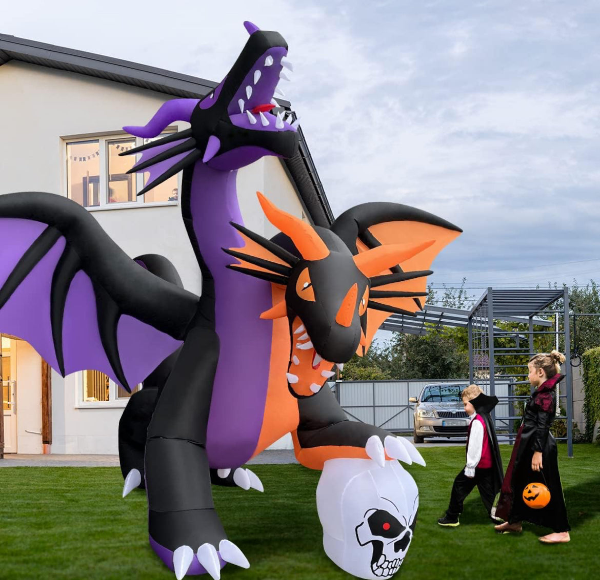 Decoración para jardín de dragón de dos cabezas inflable con luces 2.40 cm MOD 96907