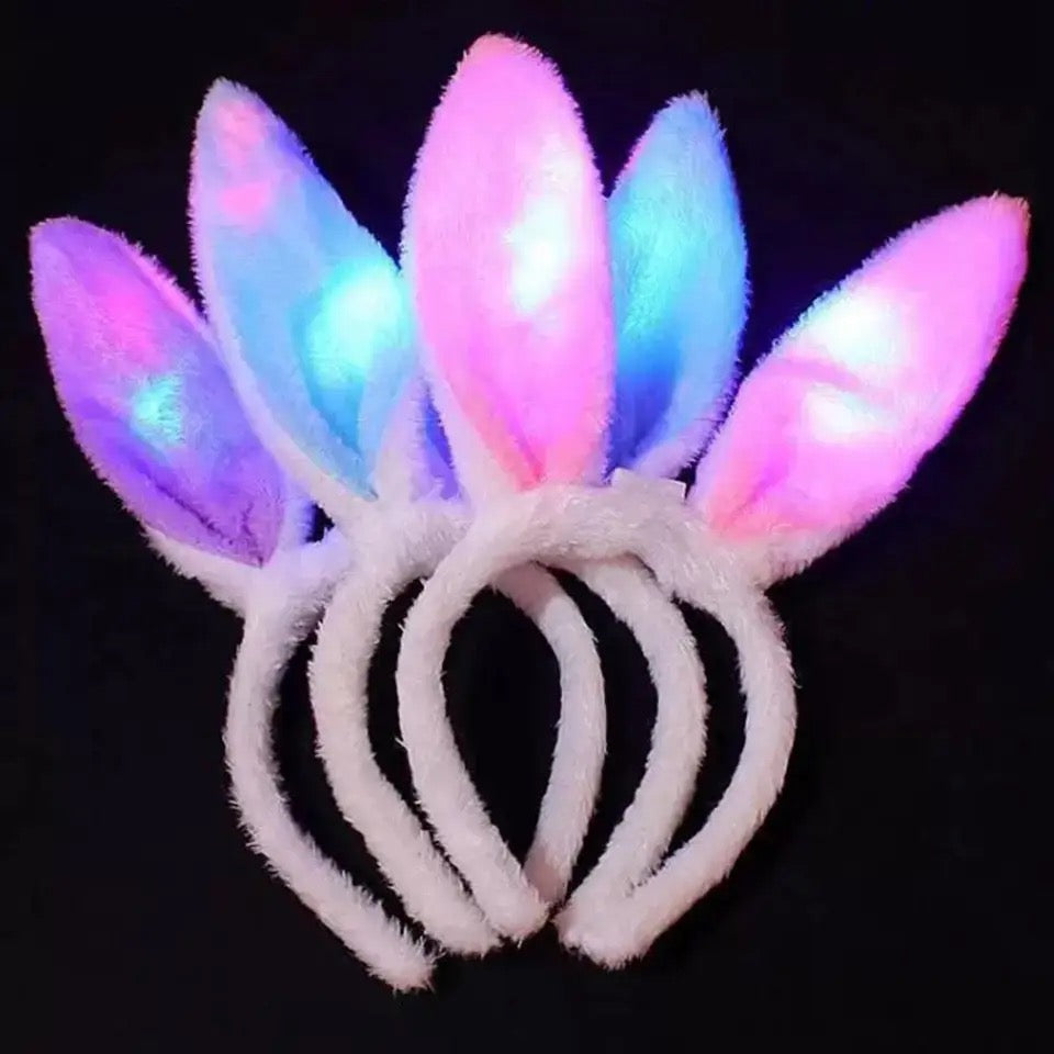 Diadema con Orejas de conejo y gato brillante, guirnalda de flores iluminadas, diadema de ratán, LED, disfraz de cumpleaños, boda y Halloween, regalo