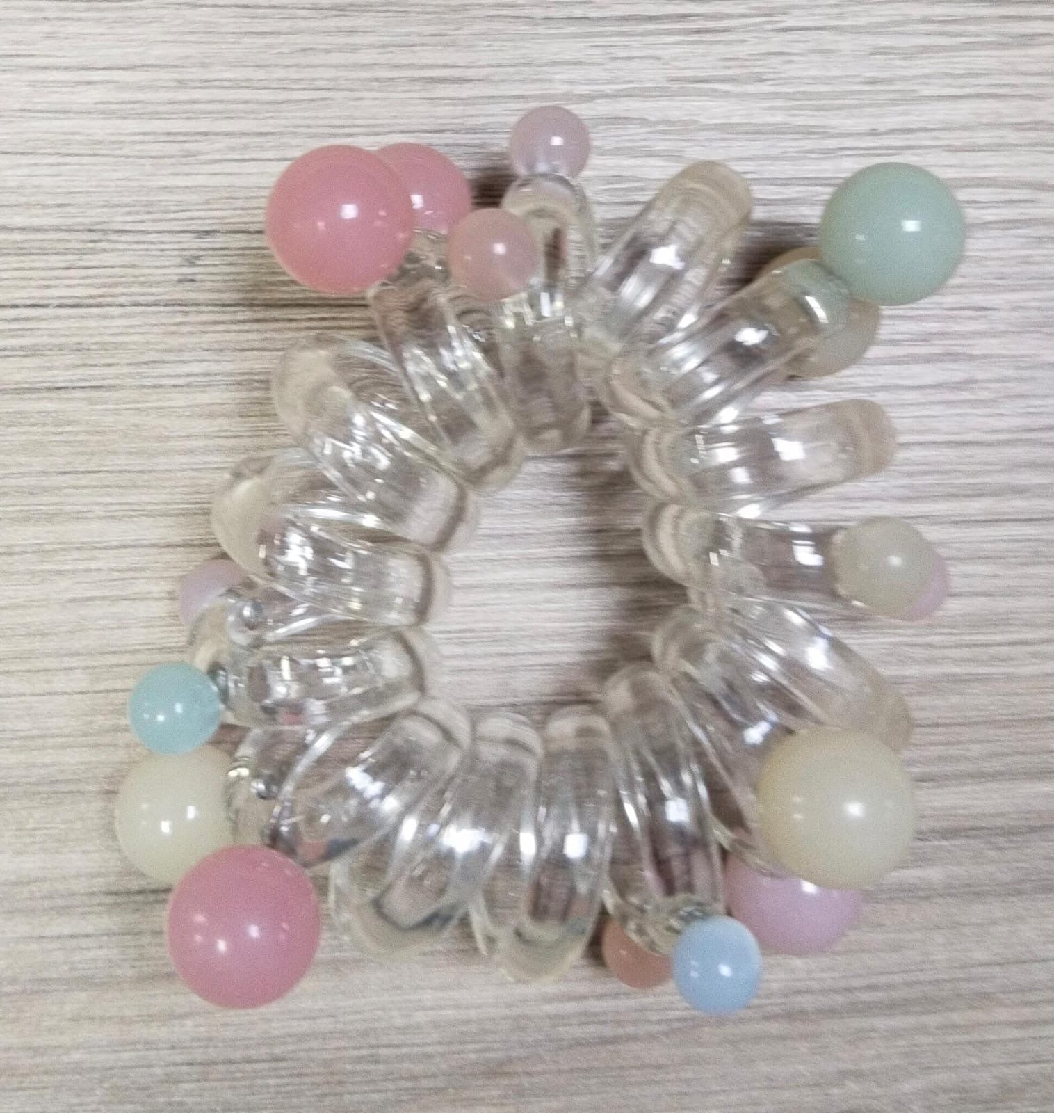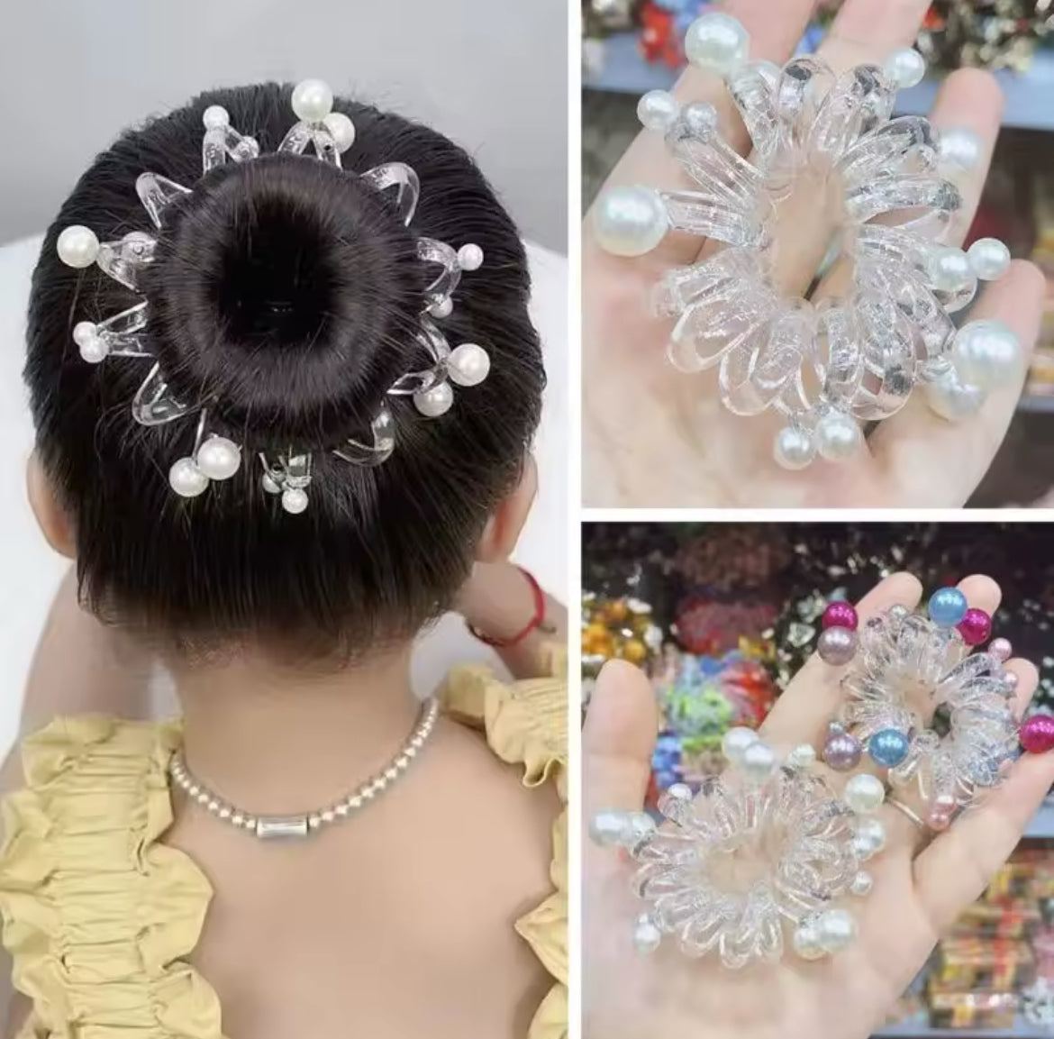Dona retro Cuerda de pelo de línea telefónica, soporte de cola de caballo de perlas elásticas de estilo coreano dulce, lazos para el cabello, banda de goma transparente, Anillo para el cabello para fiesta