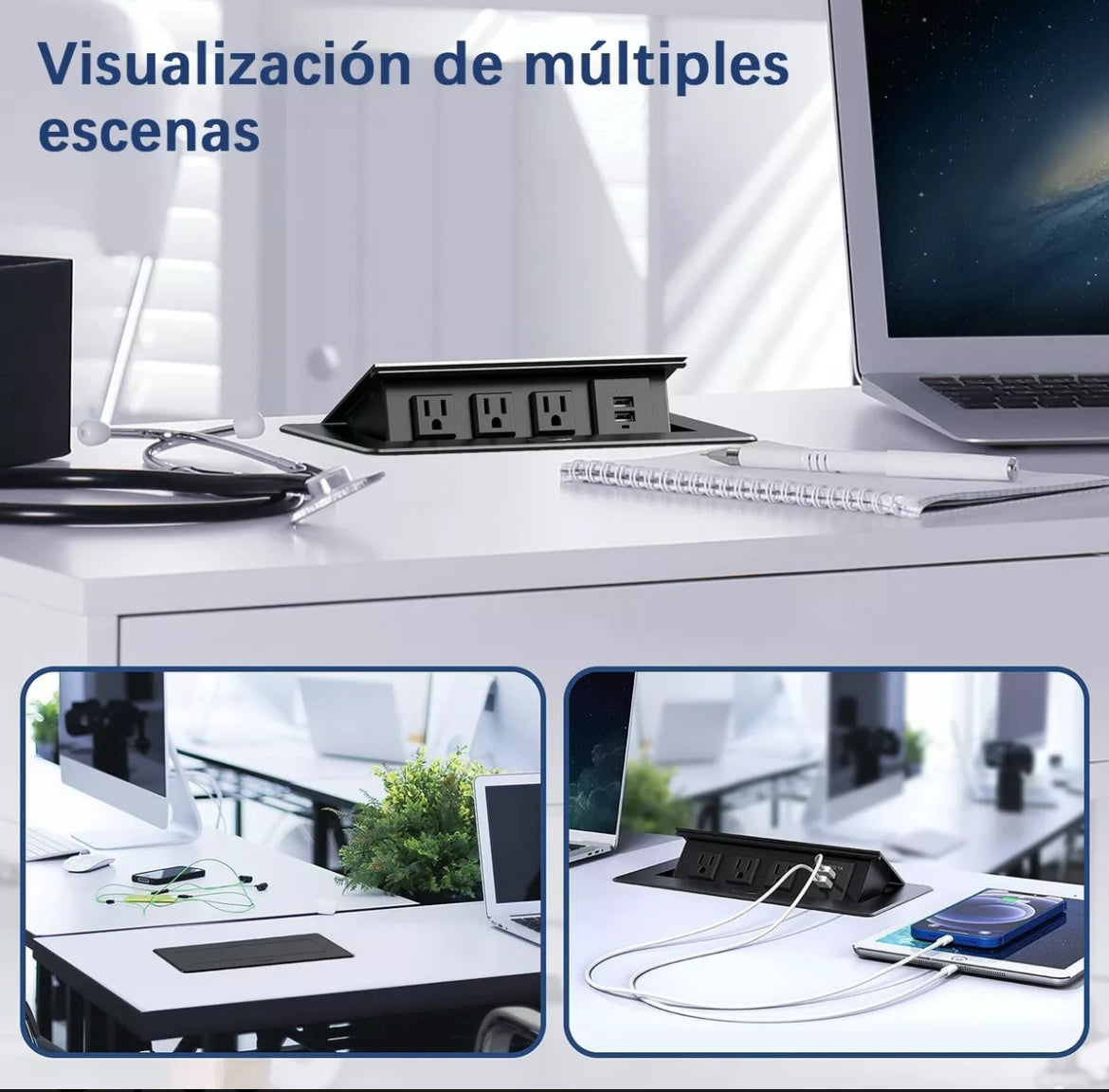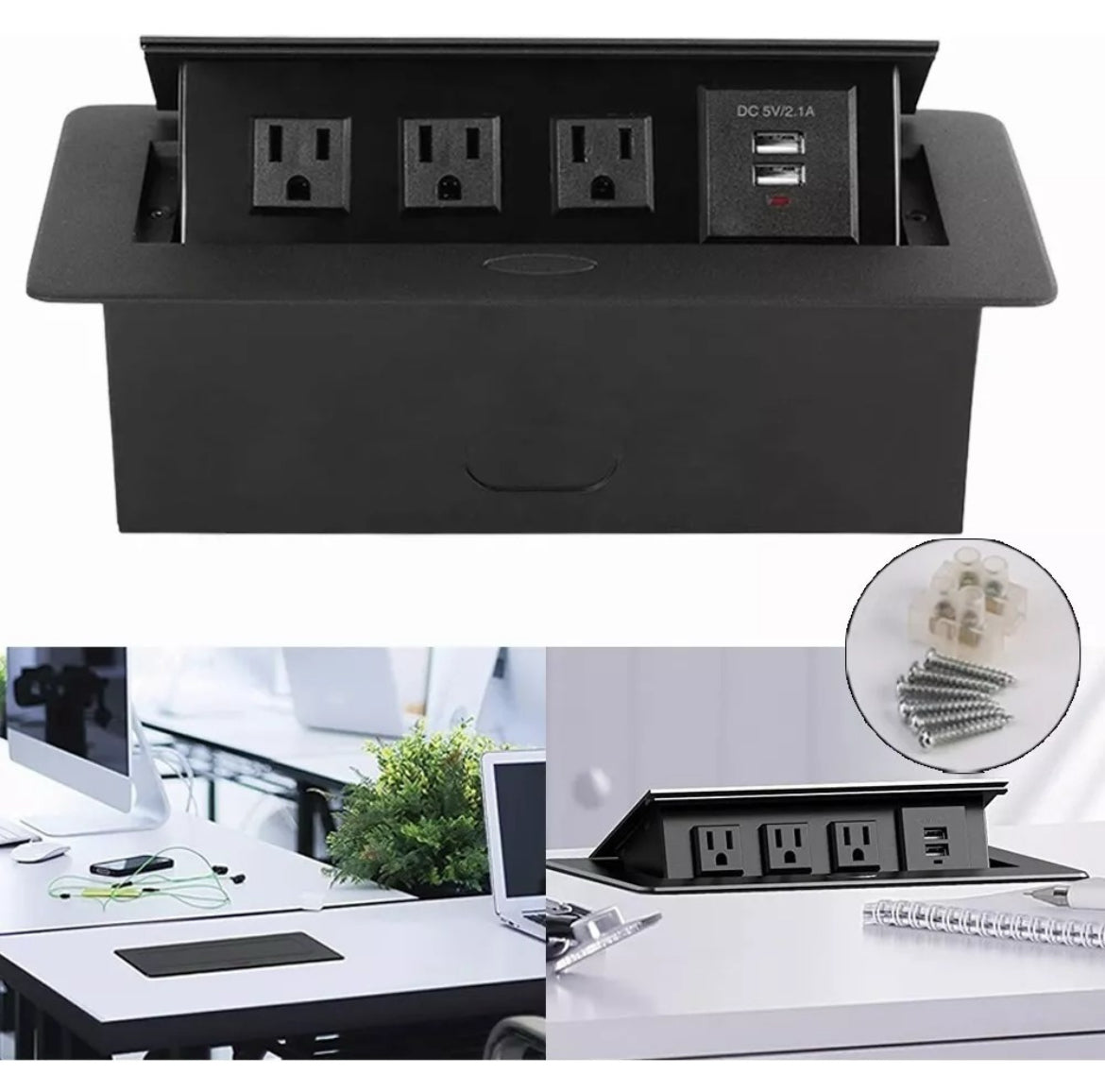 Enchufe Escritorio Embebido Placa Multi Contactos 3 Y 2 Usb MOD 2024135933