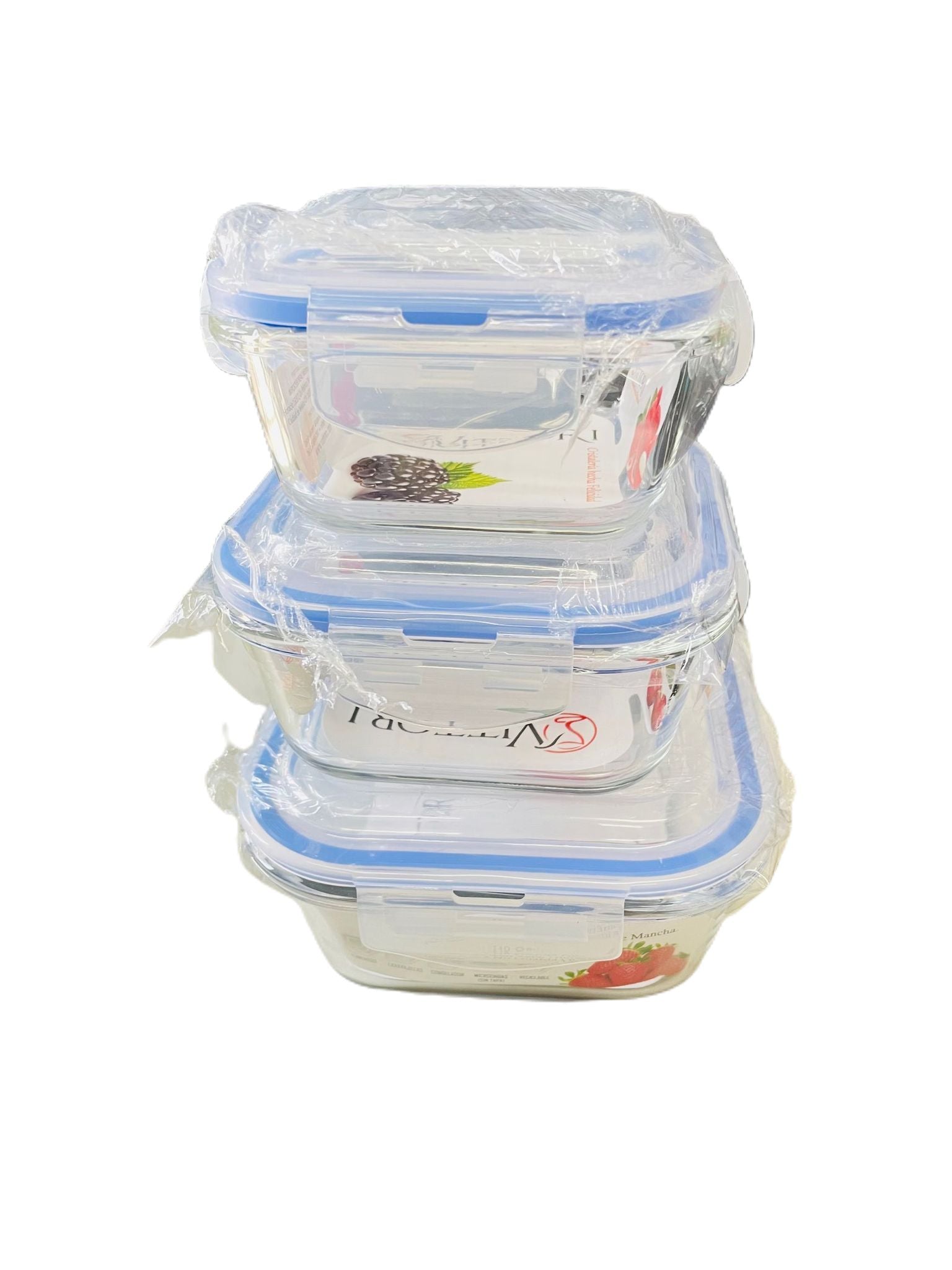 Fiambrera de vidrio sellado creativa, contenedor de comida redondo/rectangular, azul transparente, portátil de viaje, fiambrera para bebé, fiambrera para microondas 3 pz set MOD 4269
