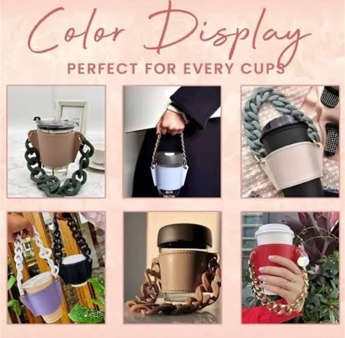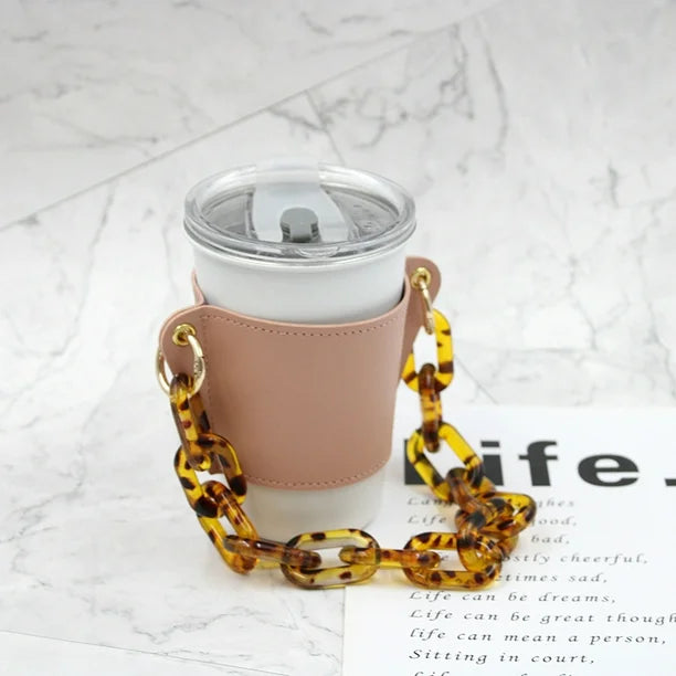 Portavaso termo reutilizable con cadena de viaje ecológica para bebidas, funda para botella de café, soporte para taza de cuero PU MOD cadena grandeMANGA