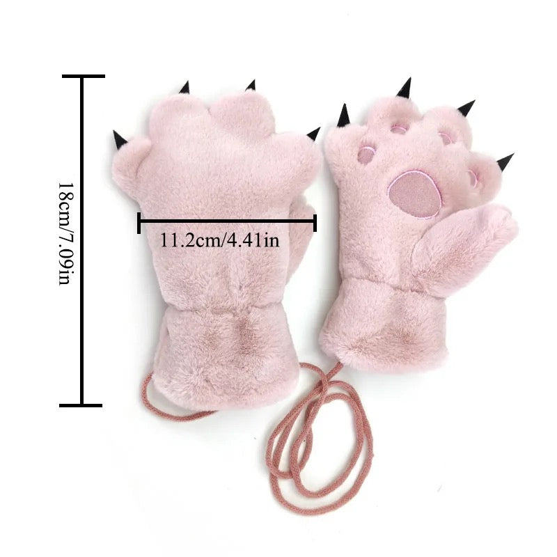 Guantes de felpa con diseño de pata de adorable garra de gato para niños