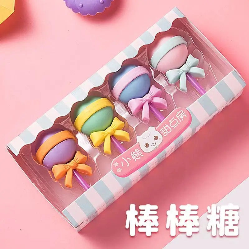 Juego de borradores de postre Yummy para niños, Mini Piruleta de helado, Donuts de goma de borrar para lápiz escolar, MOD CL5342