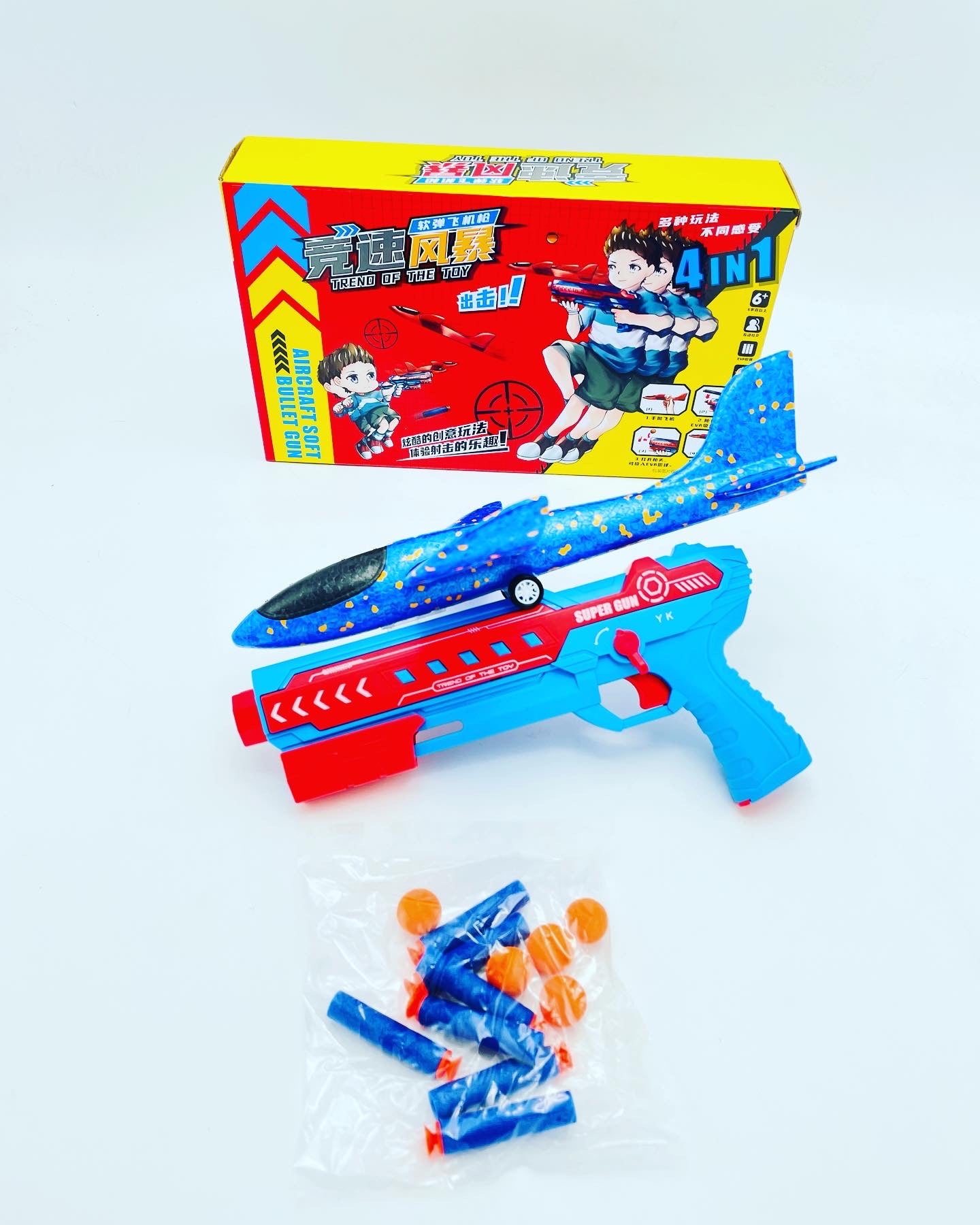 Juego de lanzador planeador creativo, juego de disparo divertido para interiores y exteriores, dardos y bolas de micil 4 en 1 MOD YK001