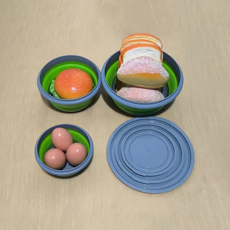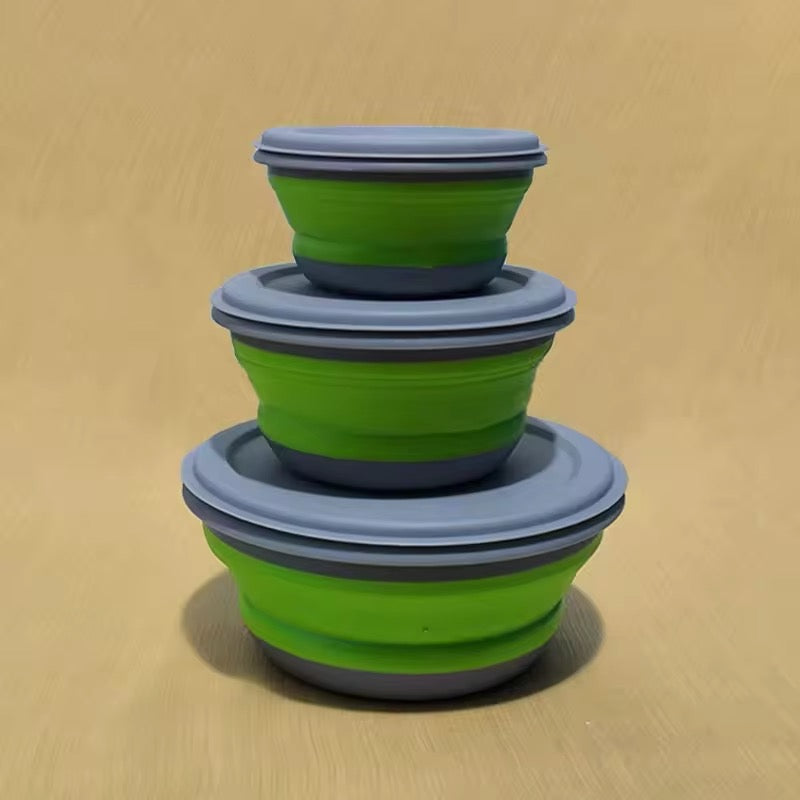 Juego plegable de 3 piezas, cuenco de viaje al aire libre, almacenamiento, tres cuencos, fiambrera, portátil, ecológico