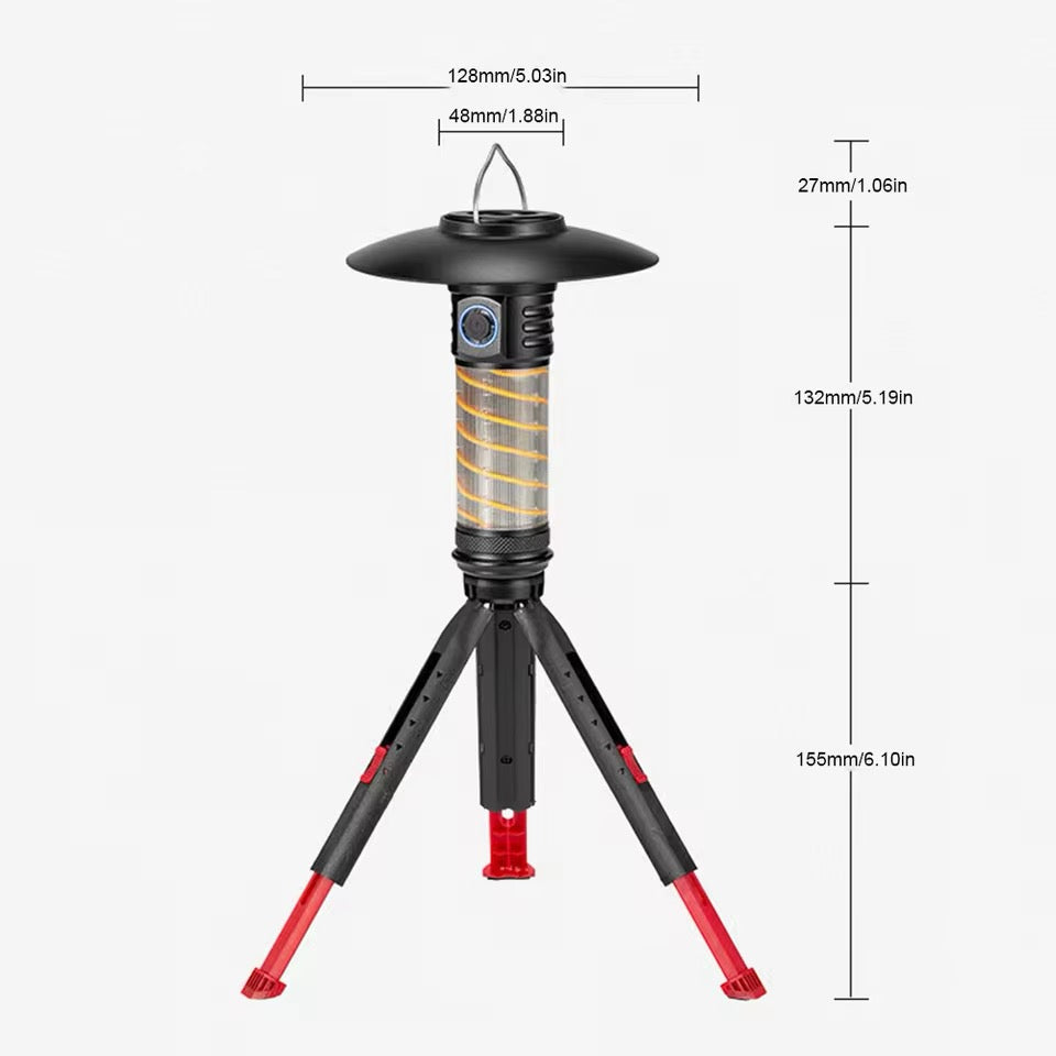 Lámpara 3 en 1 para acampar al aire libre con trípode, luz LED de ambiente tipo C, luz de tienda de carga, impermeable, 2000mAh para pesca y exploración MOD ZE-2180