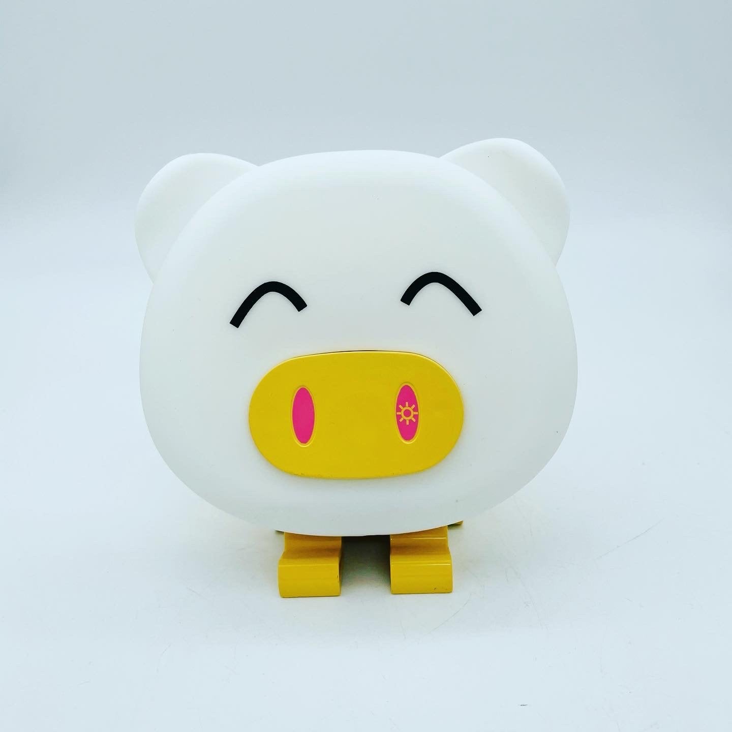 Lámpara portátil cerdito con soporte para celular color amarillo