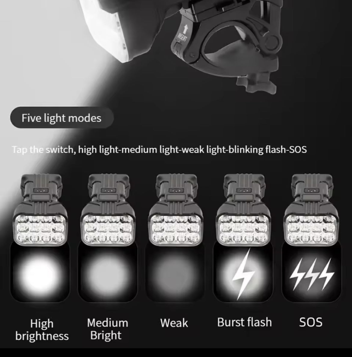 Luz delantera de bicicleta de 12 LED, luz recargable para bicicleta con bocina, luces frontales de bicicleta MTB, lámpara de seguridad para ciclismo nocturno MOD ZE-1619