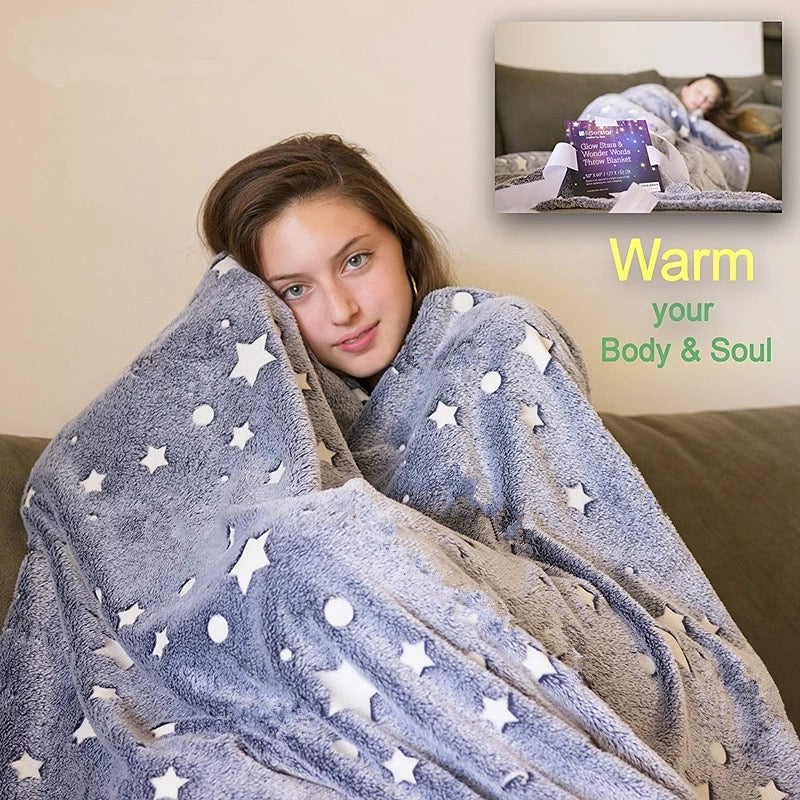 Manta cobija suave fluorescente para decoración de Navidad, regalo de cumpleaños, cura textil para el hogar, acabado de estrella, Luna, manta luminosa, curación de Luna